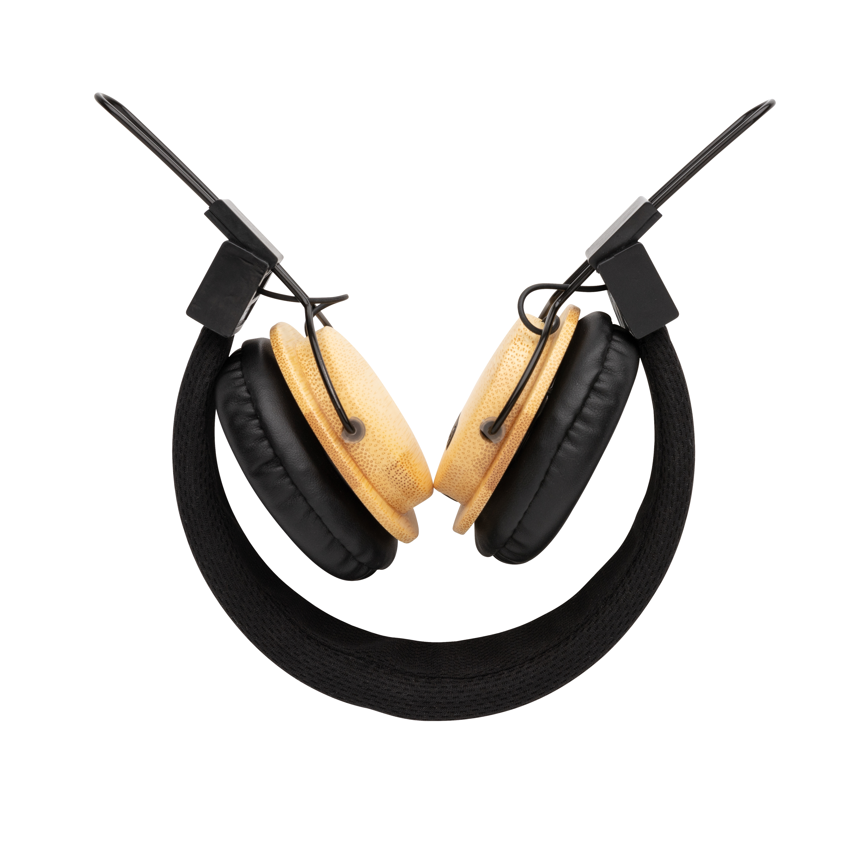 Auriculares inalámbricos de bambú ECO hechos de materiales sostenibles cuidadosamente seleccionados. Las almohadillas están hechas de bambú y la diadema está hecha de poliéster. El auricular plegable utiliza BT 5.0 para una conexión suave de hasta 10 metros. Con una batería de 200 mah que permite un tiempo de reproducción de hasta 4 horas con una sola carga y la recarga se realiza en 2 horas. Incluye micrófono para recoger y responder llamadas.