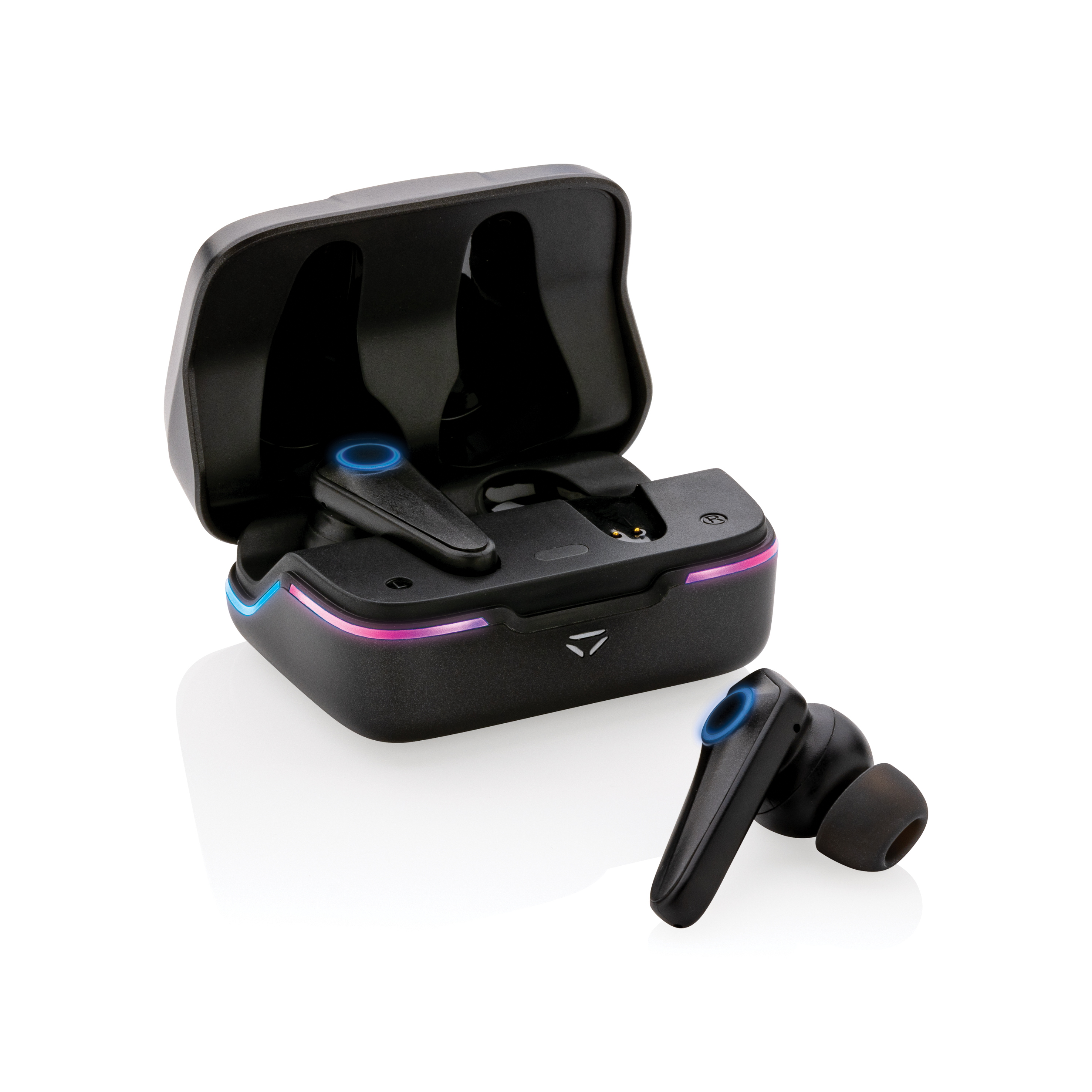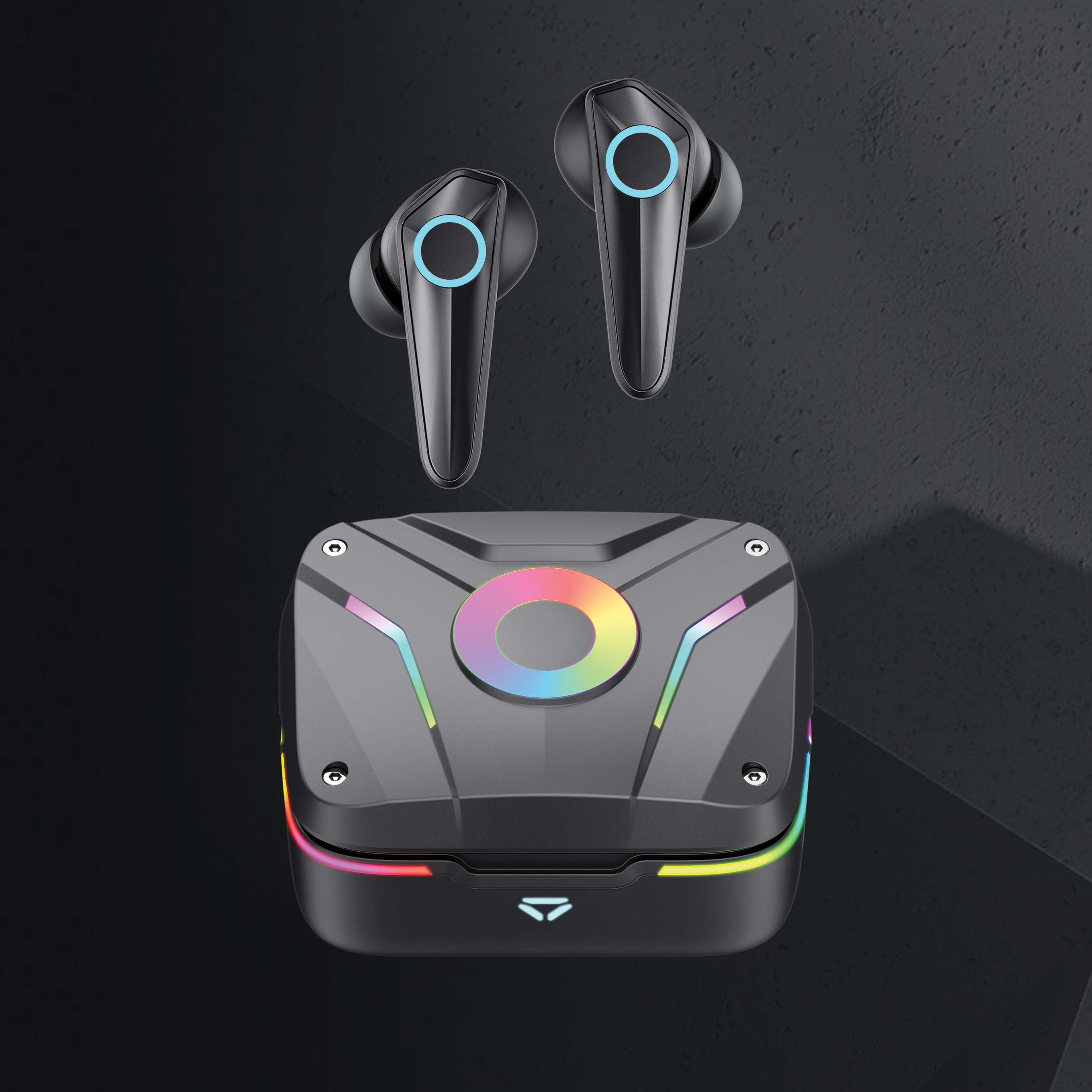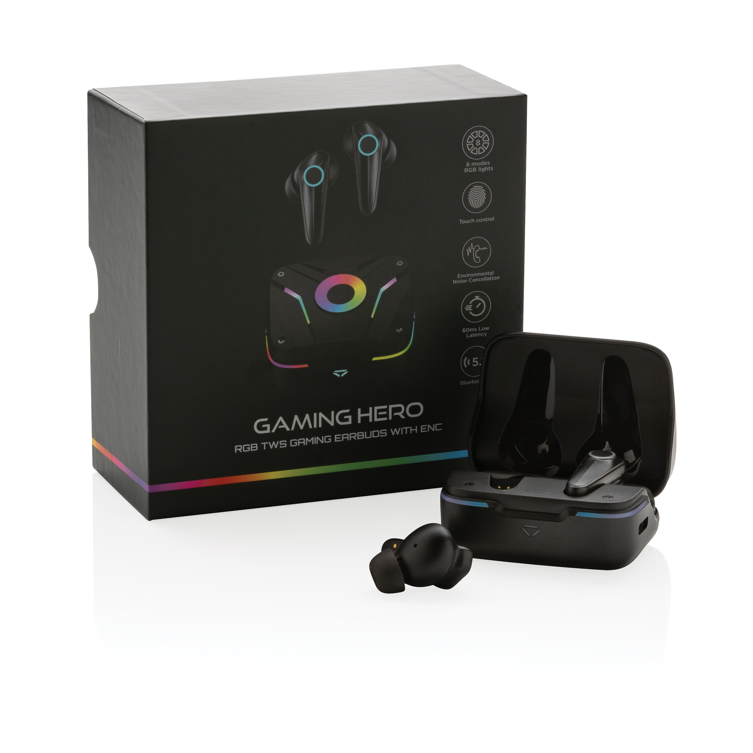 Conviértete en un héroe de los juegos con estos auriculares para juegos de alta calidad hechos para jugadores serios. Con modo de juego de baja latencia de 60 ms para jugar videojuegos sin demora entre tu pantalla y el sonido que estás escuchando. Con control táctil completo para operar los auriculares durante tus sesiones de juego. Con ENC integrado para llamadas y comunicaciones nítidas durante el juego. Las luces RGB integradas se pueden configurar en diferentes modos. Con BT 5.1 para un funcionamiento suave y una distancia de hasta 10 metros. Impermeable IPX4 . Tiempo de reproducción de hasta 6 horas y recarga de auriculares en 1 hora y el estuche de carga se recarga en 2 horas. Con MIC integrado. Incluye auriculares de 3 tamaños. El artículo y el cable no contienen PVC.