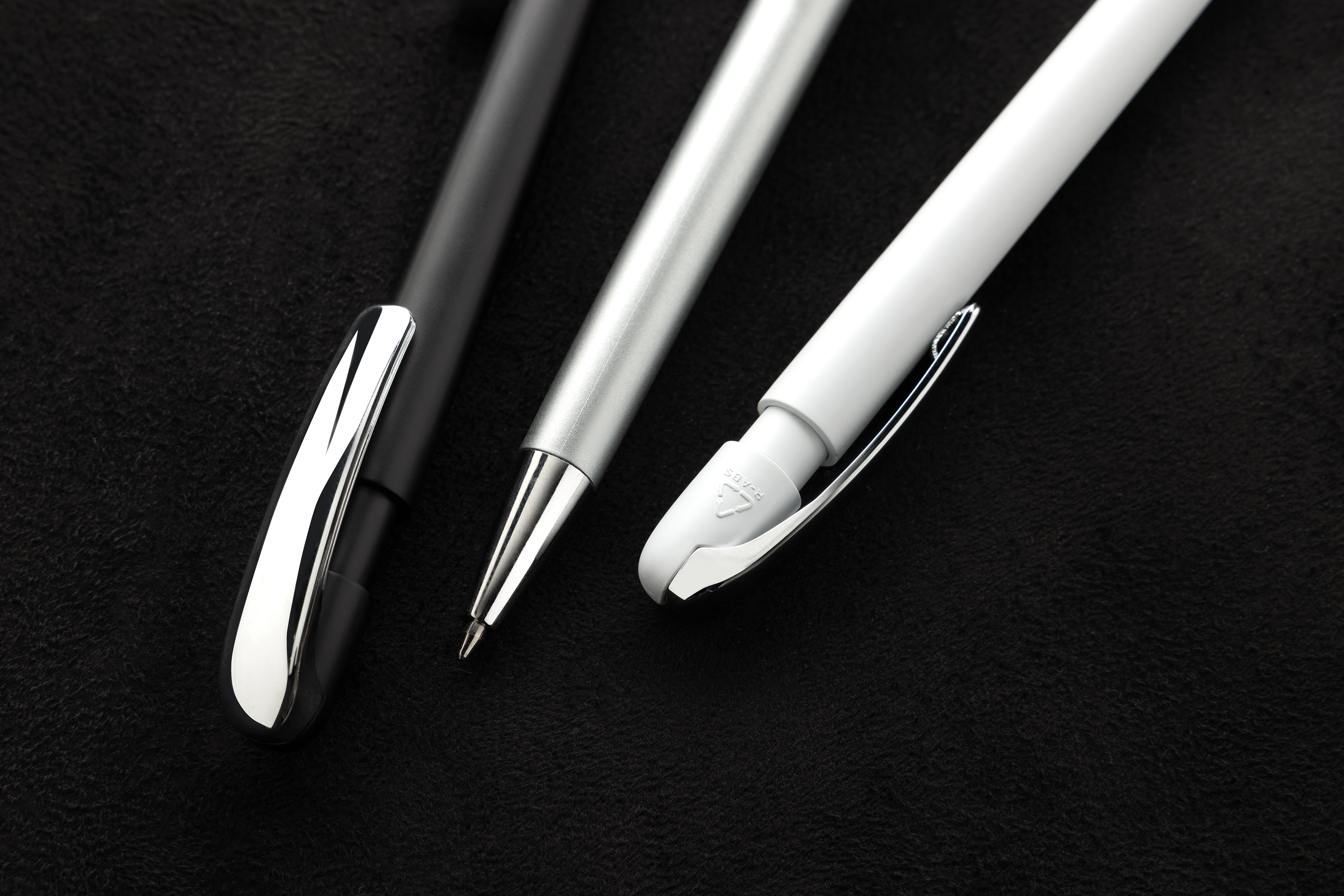 Bolígrafo con un elegante clip metálico cromado. Incluye recarga de tinta azul alemana Dokumental® con una longitud de escritura de aprox. 1200 m y bola TC para una escritura ultrasuave. Fabricado con un 55% de ABS reciclado y certificado RCS.