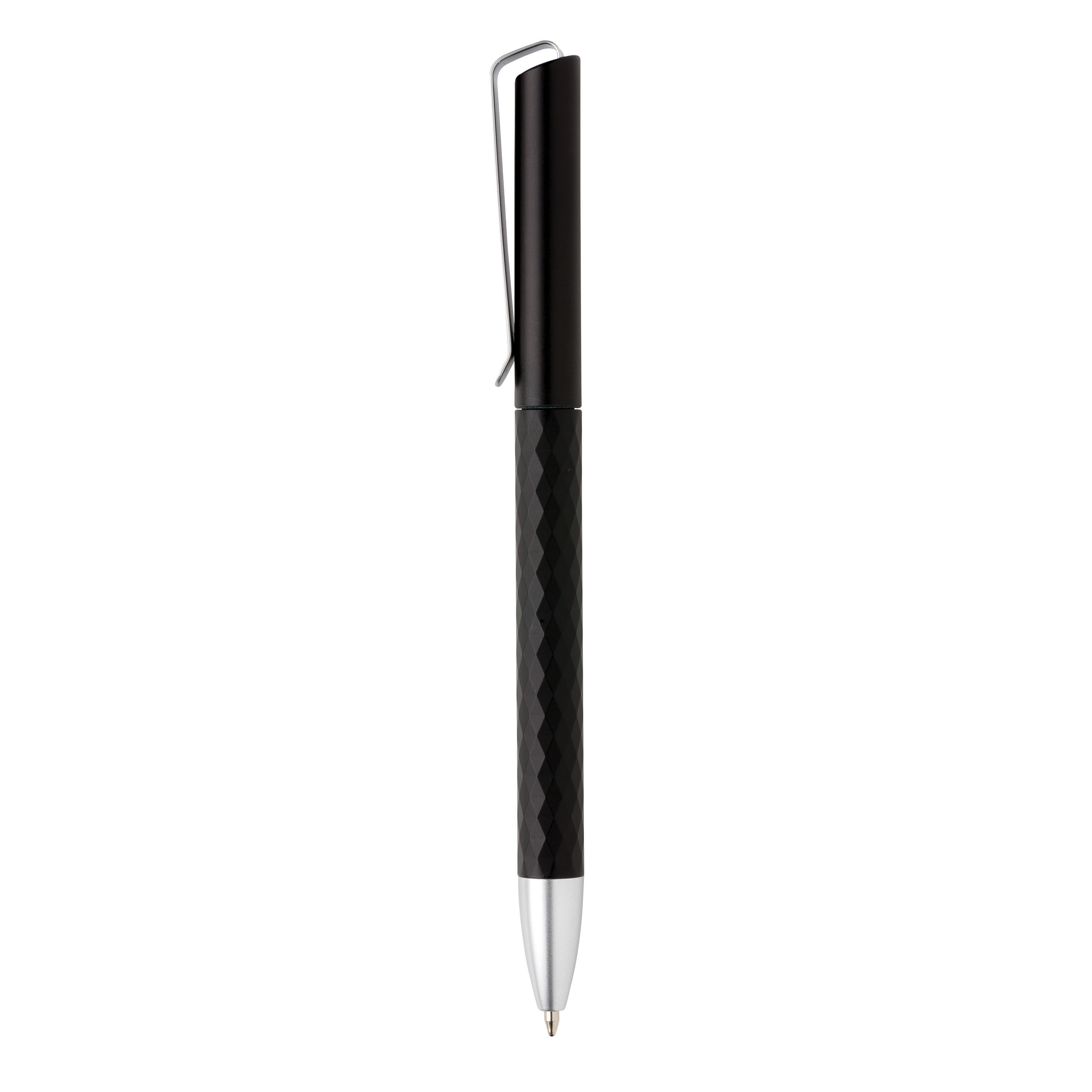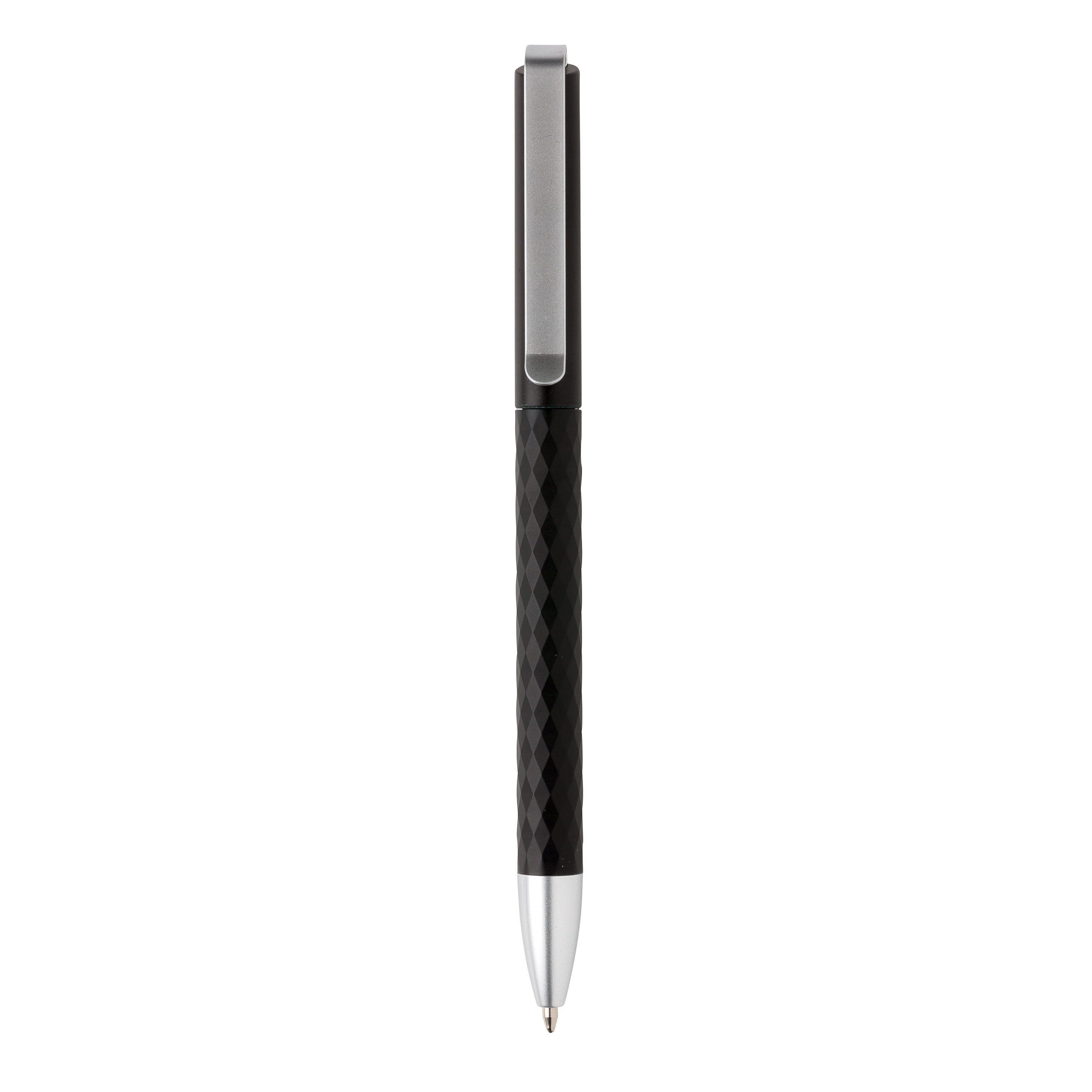 Bolígrafo único con clip de metal y con radiantes formas de diamante. Con 1200m de longitud de escritura. Tinta azul alemana Dokumental®. Con bola TC para una escritura ultra suave.
