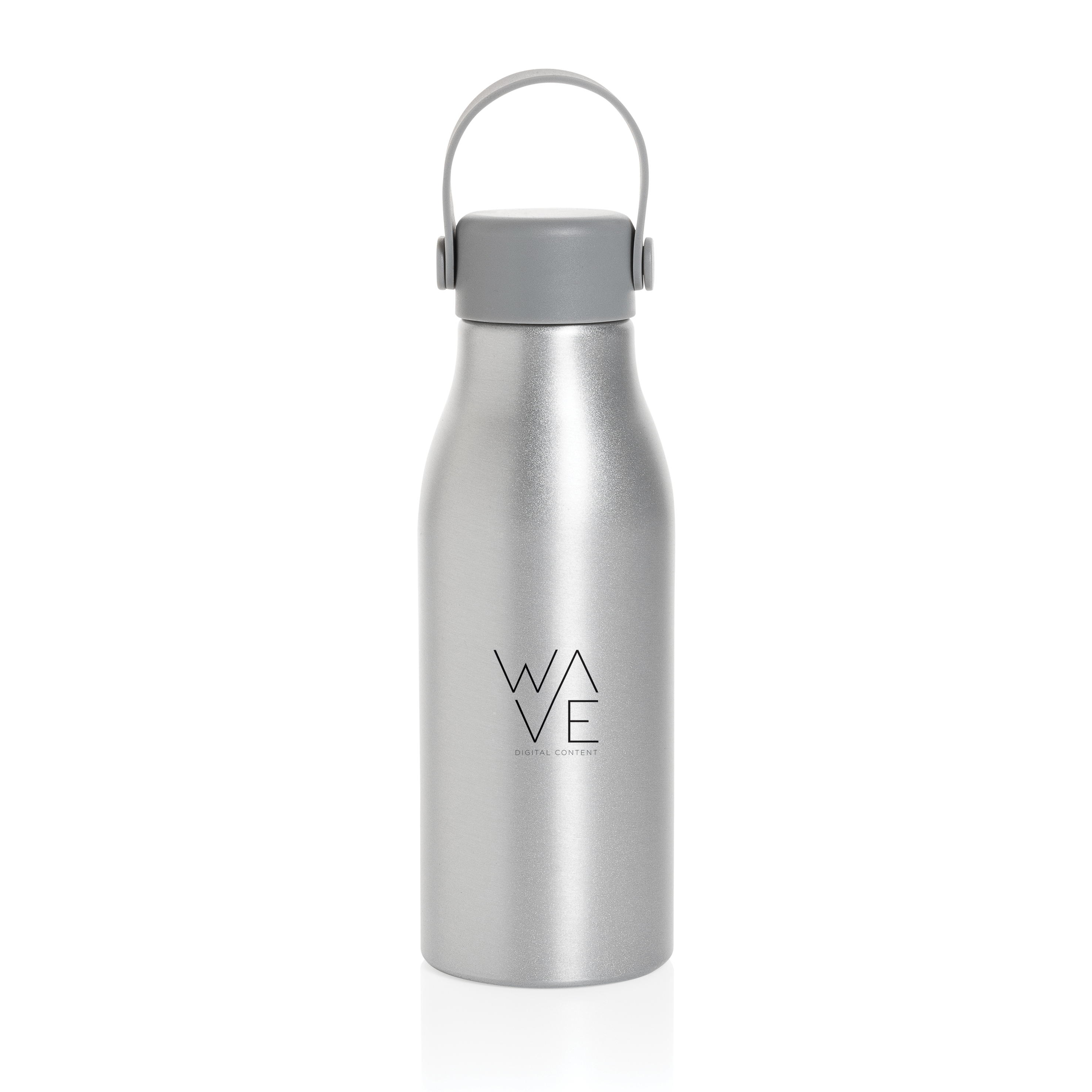 Botella Pluto RCS certificado aluminio reciclado 680 ml. La botella de agua presenta una construcción de pared simple con una tapa atornillada resistente a fugas. La correa de silicona incorporada en la tapa está diseñada para que este artículo sea fácil de transportar cuando está en movimiento. El exterior tiene un acabado mate. Lavar a mano únicamente.