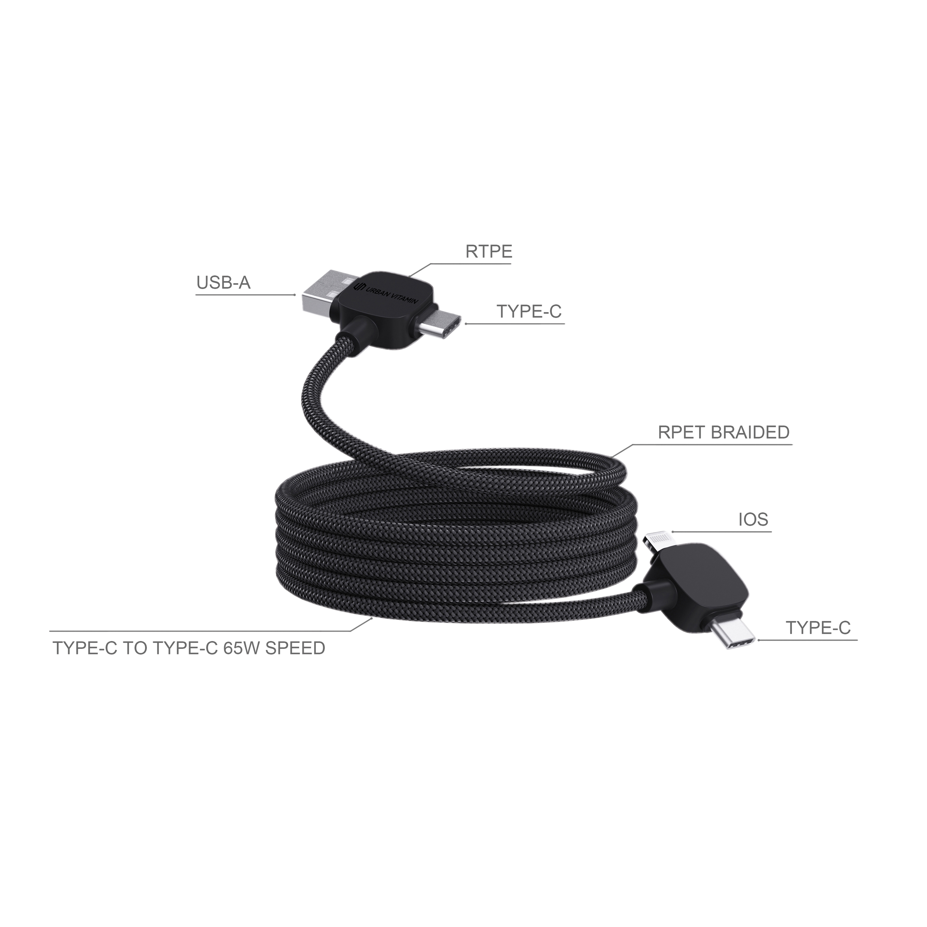 El cable de carga magnético definitivo de 120 cm para una conectividad perfecta. Dile adiós a los cables enredados, diseñado para revolucionar tu experiencia de carga. Su diseño evita enredos y es portátil. Se adapta a su estilo de vida en movimiento y ofrece entradas USB Type-C y USB-A, lo que garantiza la compatibilidad con varios dispositivos. Con salidas iOS y Type-C, es lo suficientemente versátil como para cargar tu iPhone, dispositivo Android o computadora portátil. Stockton es tu opción para transferir datos sin problemas, sincronizar archivos, fotos y música entre dispositivos a la velocidad del rayo. Con una sólida capacidad de carga de 65W. Stockton está fabricado con ABS reciclado certificado RCS (Recycled Claim Standard). Contenido total reciclado: 55 % basado en el peso total del artículo. Los artículos de Urban Vitamin están fabricados sin PVC y presentados en envases reducidos en plástico.