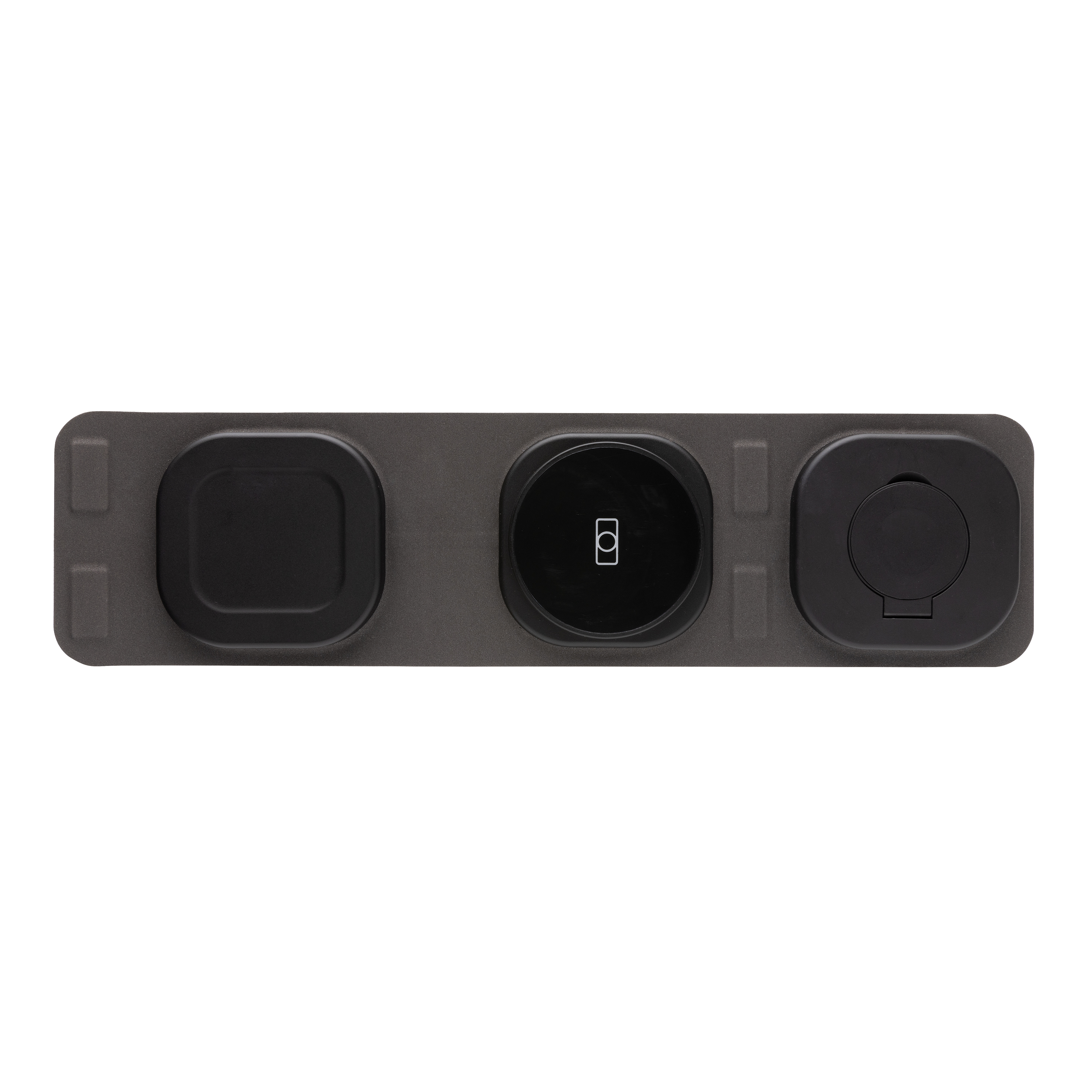Cargador inalámbrico 3 en 1 plegable de lujo fabricado con ABS reciclado RCS. Contenido reciclado total: 46% basado en el peso total del artículo. La certificación RCS garantiza una cadena de suministro completamente certificada de los materiales reciclados. El cargador inalámbrico viene equipado con una batería magnética de 15W y un cargador inalámbrico adicional de 5W adecuado para fundas de auriculares u otros dispositivos inalámbricos pequeños que se pueden cargar. Dispone de cargador inalámbrico de 2,5W para relojes inteligentes (solo relojes Apple). Incluye cable TPE reciclado de 120 cm con certificación RCS. Presentado en embalaje kraft mixto FSC®. Artículo y accesorios 100% libres de PVC. Entrada: 9V/3A para un uso óptimo. Salida: Teléfono: 9V/1.1A; 9 V/1,67 A/(15W), auriculares: 5 V/1 A (5W), reloj: 5 V/0,5 A.