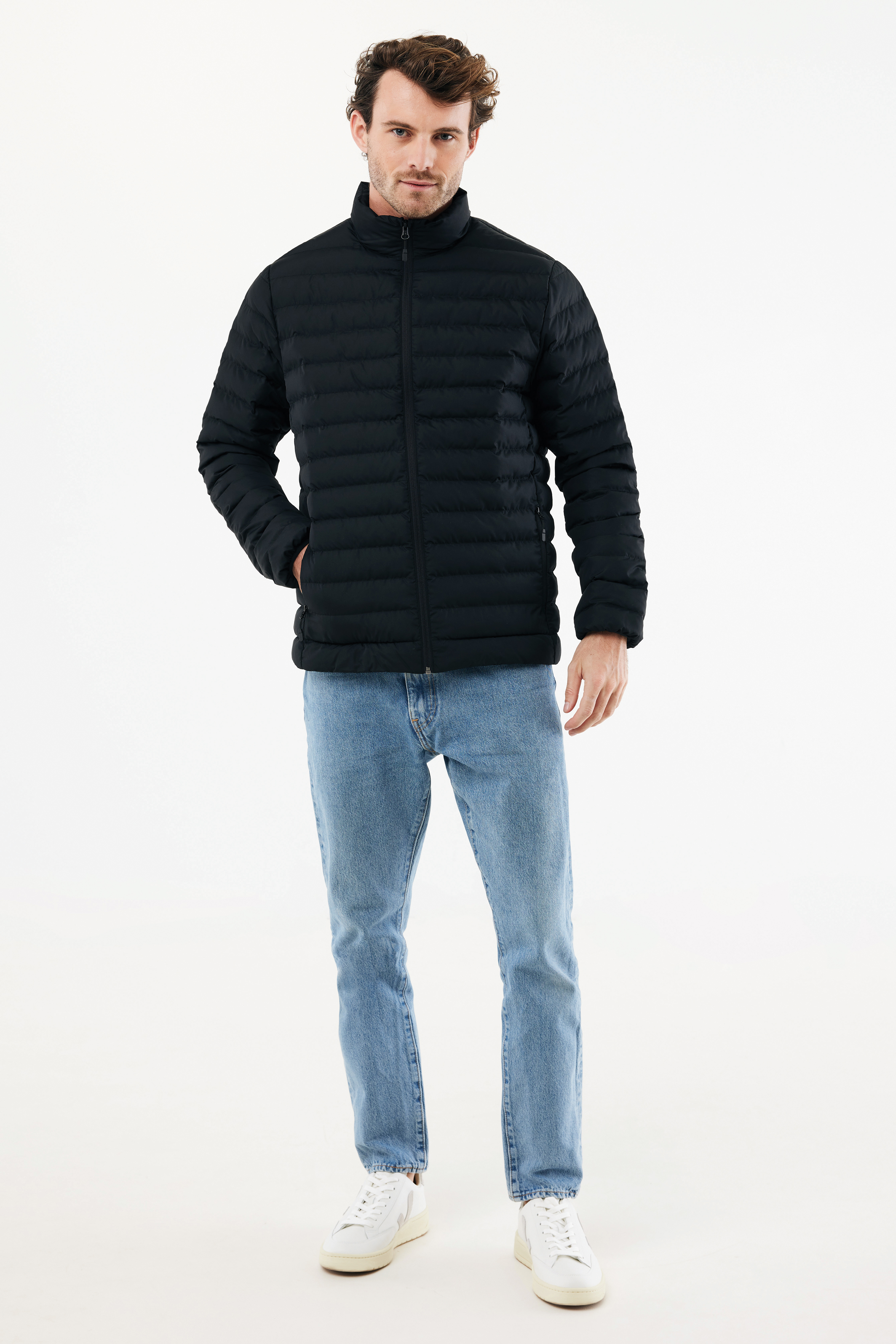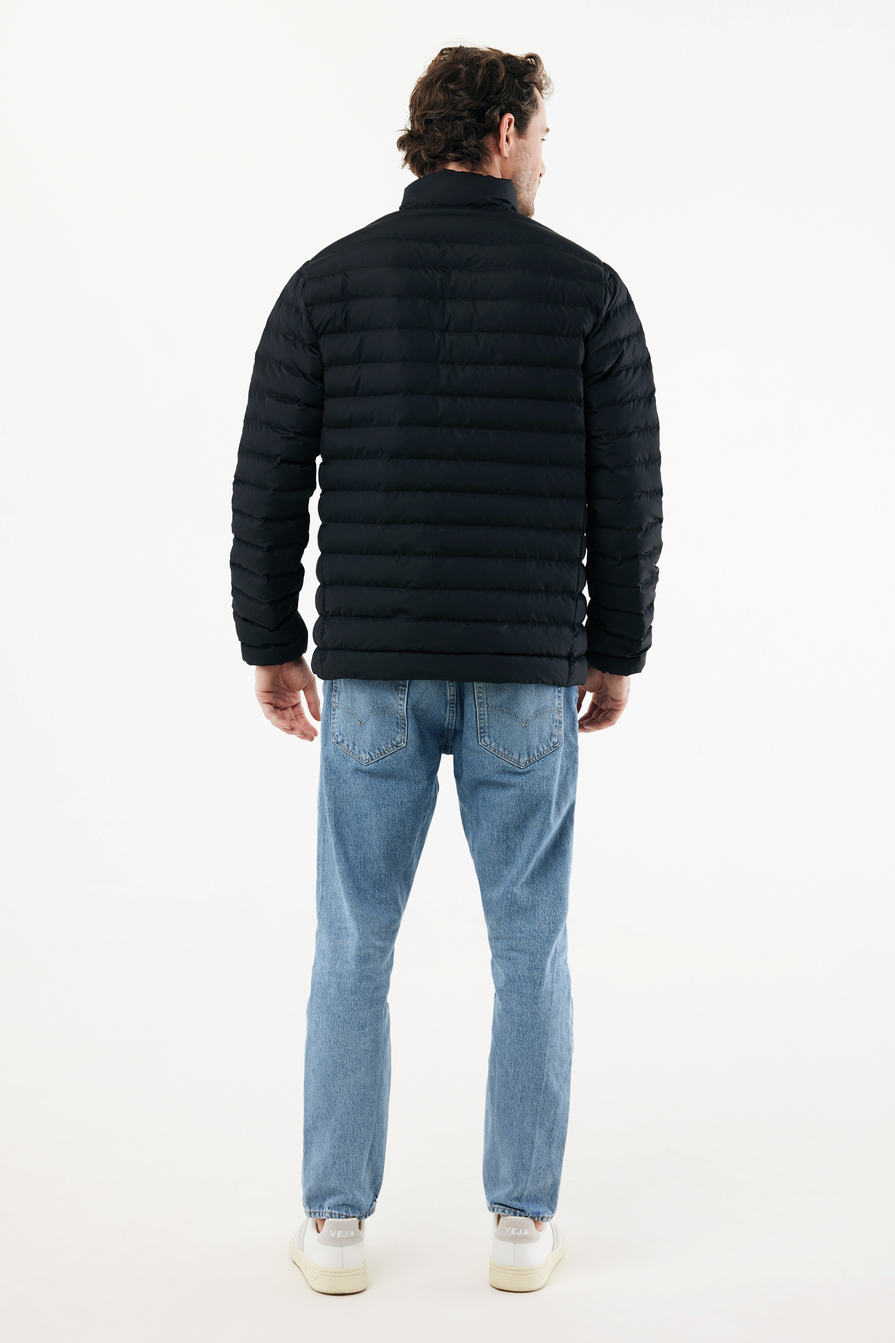 Chaqueta acolchada de corte medio para hombre, confeccionada con 100% poliéster reciclado posconsumo. Está completamente acolchada con relleno de poliéster 100% reciclado. Presenta una cremallera invertida en la parte delantera y prácticos bolsillos con cremallera en las costuras laterales. Todas las cremalleras cuentan con tiradores adicionales a juego para un look refinado. Los puños tienen ribete elástico y todas las costuras interiores tienen un acabado impecable con ribete reciclado. Impregnación hidrófuga sin flúor ni PFAS. El uso de materiales textiles reciclados genuinos y las declaraciones de impacto ambiental están garantizadas mediante el uso del trazador físico disruptivo AWARE™ y la tecnología blockchain. Al escanear el código QR, accederás a un pasaporte digital específico. El 2% de los ingresos de cada producto vendido se donará a Water.org. Con certificación OEKO-TEX® STANDARD 100. La chaqueta acolchada Maiko también está disponible en talla para mujer.