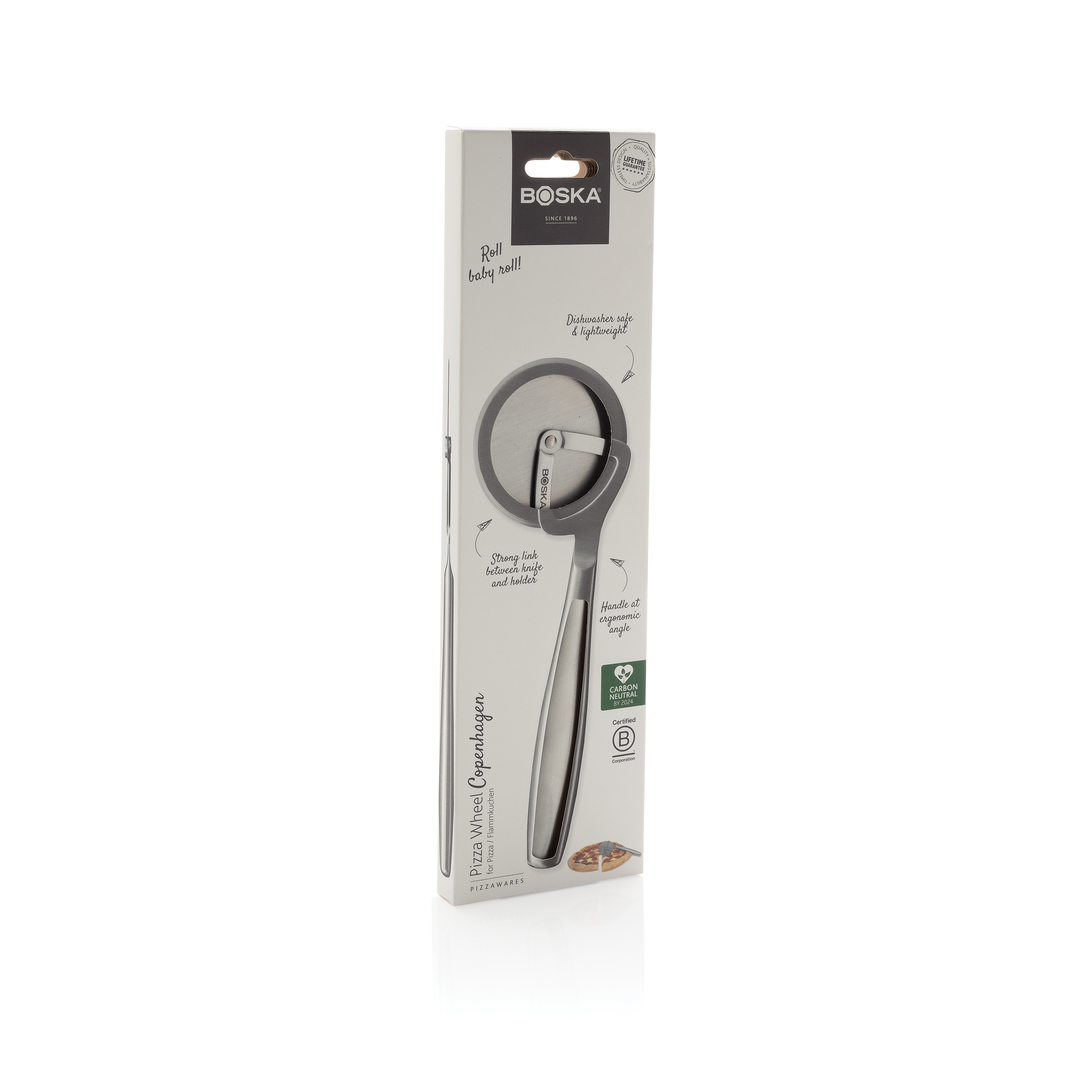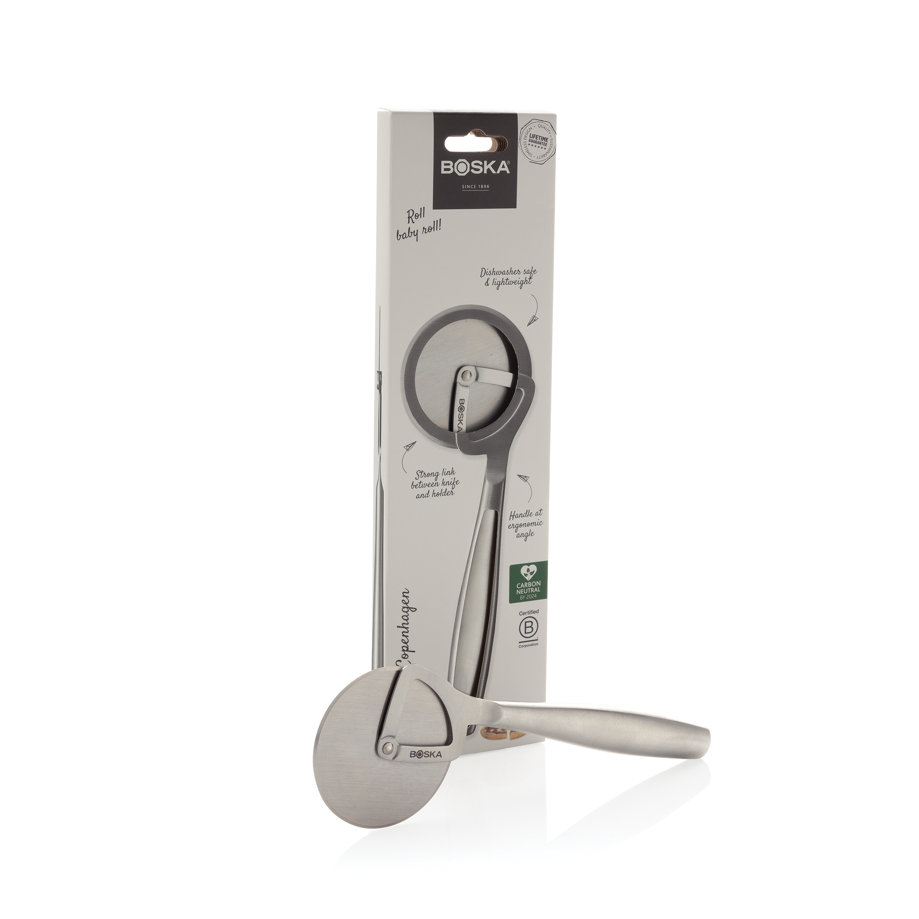 Corta tu pizza en porciones perfectas con el cortador de pizza Copenhagen de BOSKA, una empresa certificada como B Corporation. Hecha completamente de acero inoxidable, este cortador de pizza es apto para lavavajillas y neveras. Es ligero pero muy resistente, y no se tambalea al cortar. Respaldada por una garantía de por vida, ¿qué más podrías pedir?