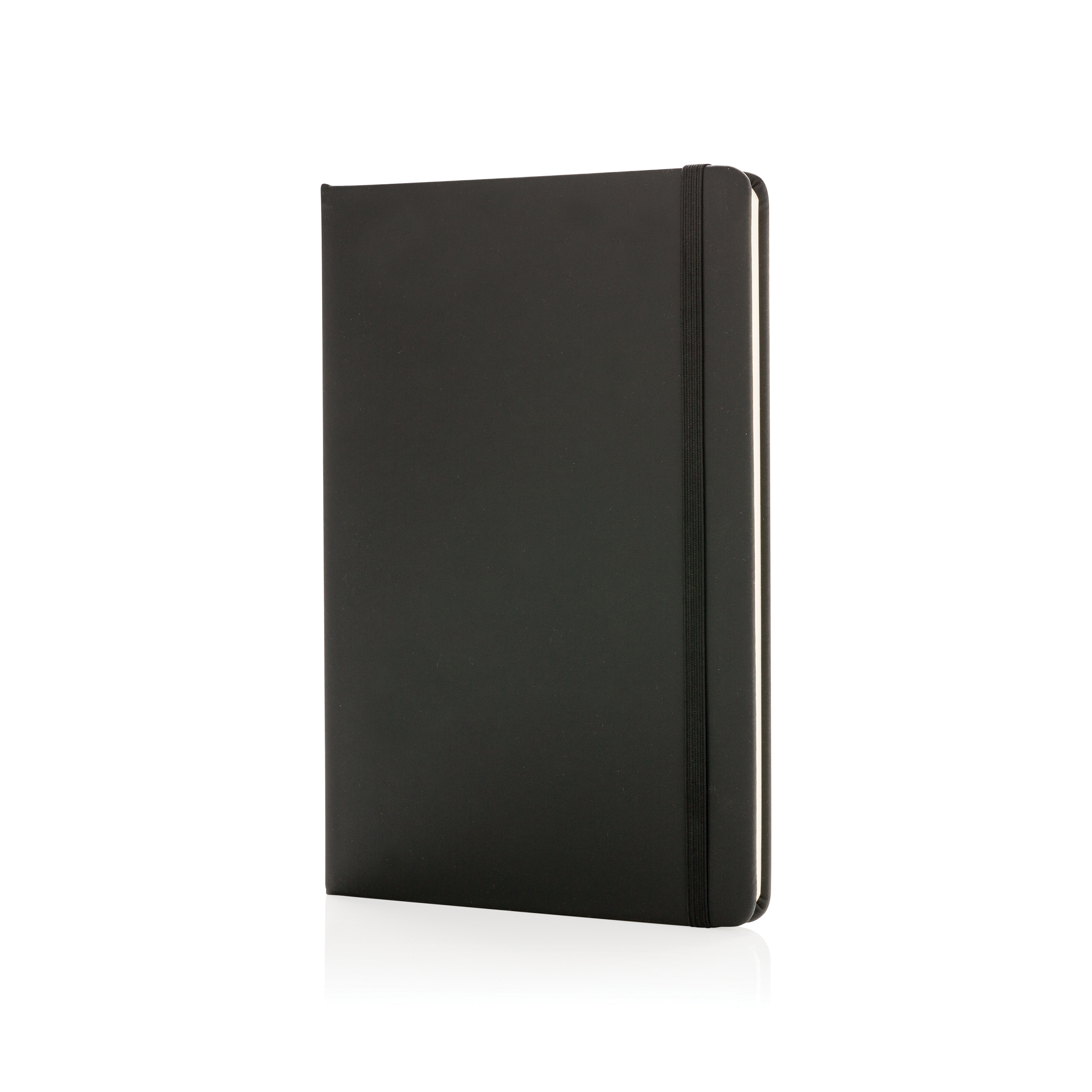 Un cuaderno clásico A5 rayado con tapa dura de PU, cierre elástico y cinta marcapáginas negra. 144 páginas de 70 g/m2 en el interior. Páginas de color crema.