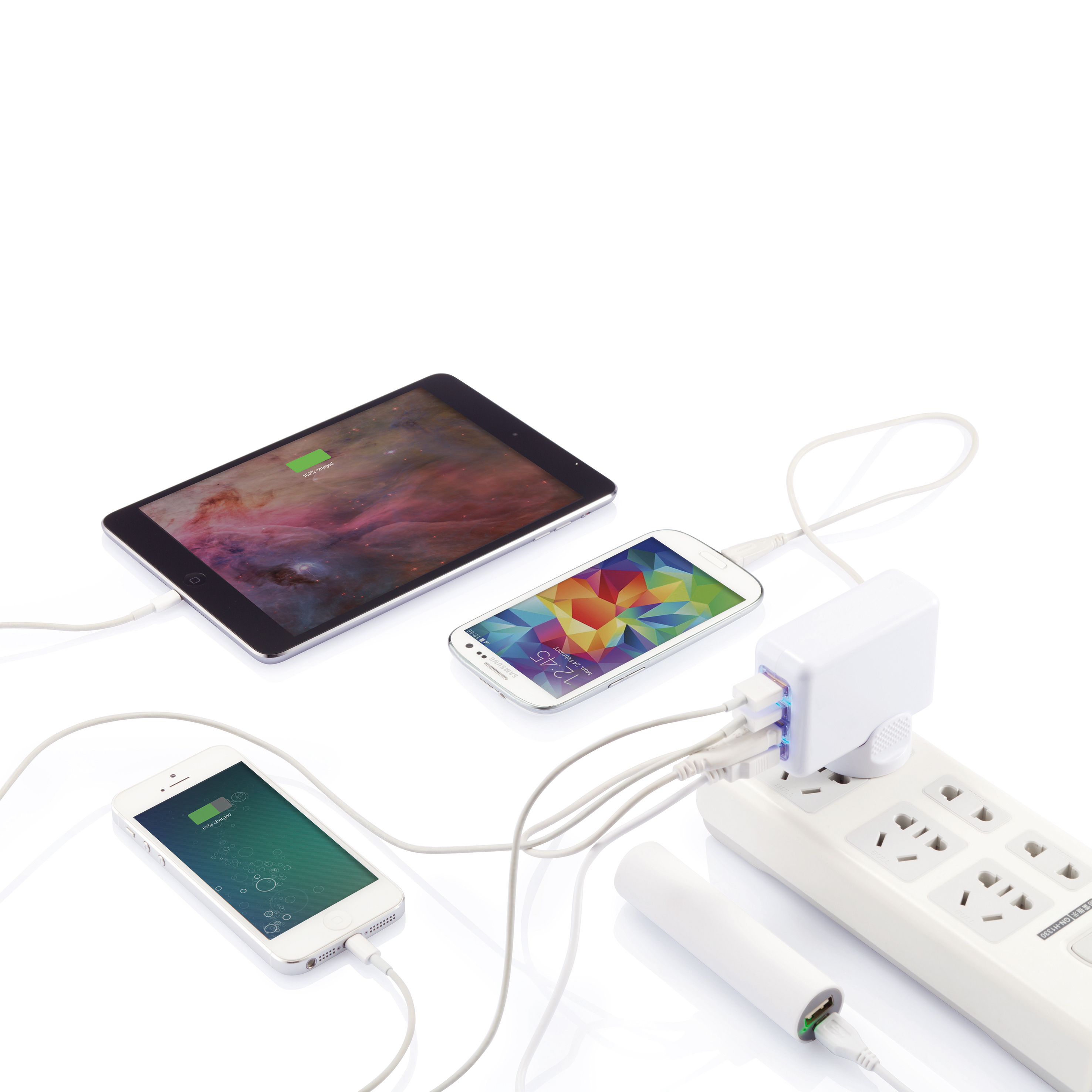 Enchufe de viaje portátil con 4 puertos USB para cargar todos tus dispositivos. La potente salida 3.1A te permite suficiente potencia para cargar todos tus dispositivos al mismo tiempo. AC Max 240V/350mA, USB Max 5.25V/3.1 mA DC. Incluye 4 enchufes diferentes. Presentado en estuche.