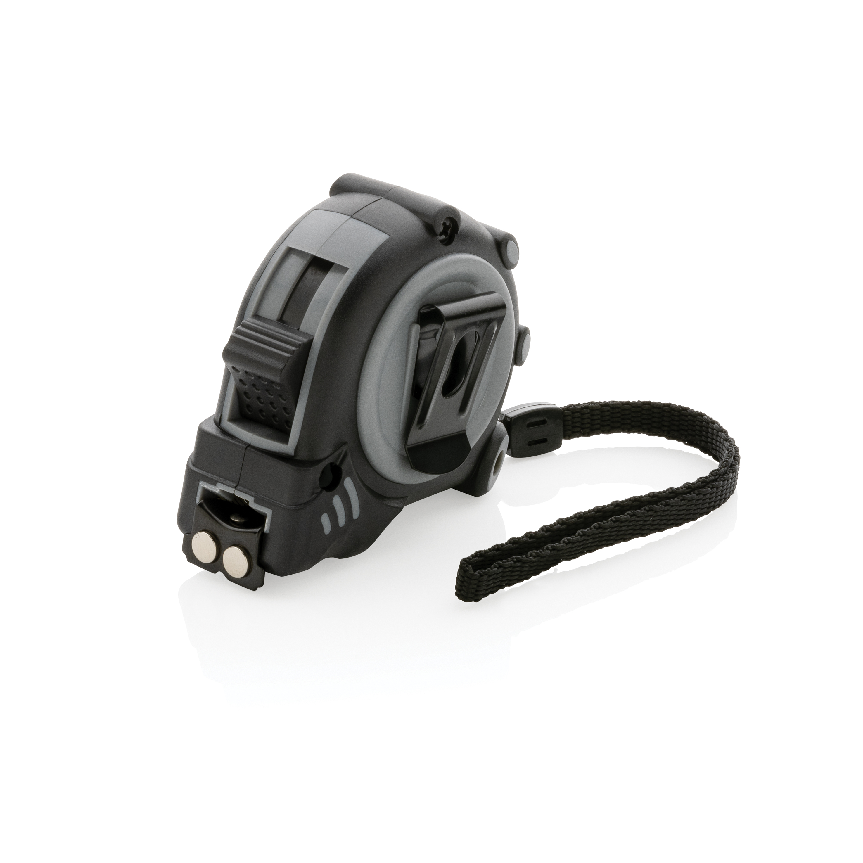Flexómetro de 3 metros fabricado con ABS reciclado certificado RCS (Recycled Claim Standard). Contenido reciclado total: 19% basado en el peso total del artículo. La certificación RCS garantiza una cadena de suministro completamente certificada de los materiales reciclados. Con empuñadura de goma TRP de lujo para mayor control. Con botón de liberación/retención. Con cinta amarilla de una cara de 16 mm con gancho de acero al carbono negro con dos imanes integrados. Con muñequera de poliéster. Presentado en embalaje kraft mixto FSC®
