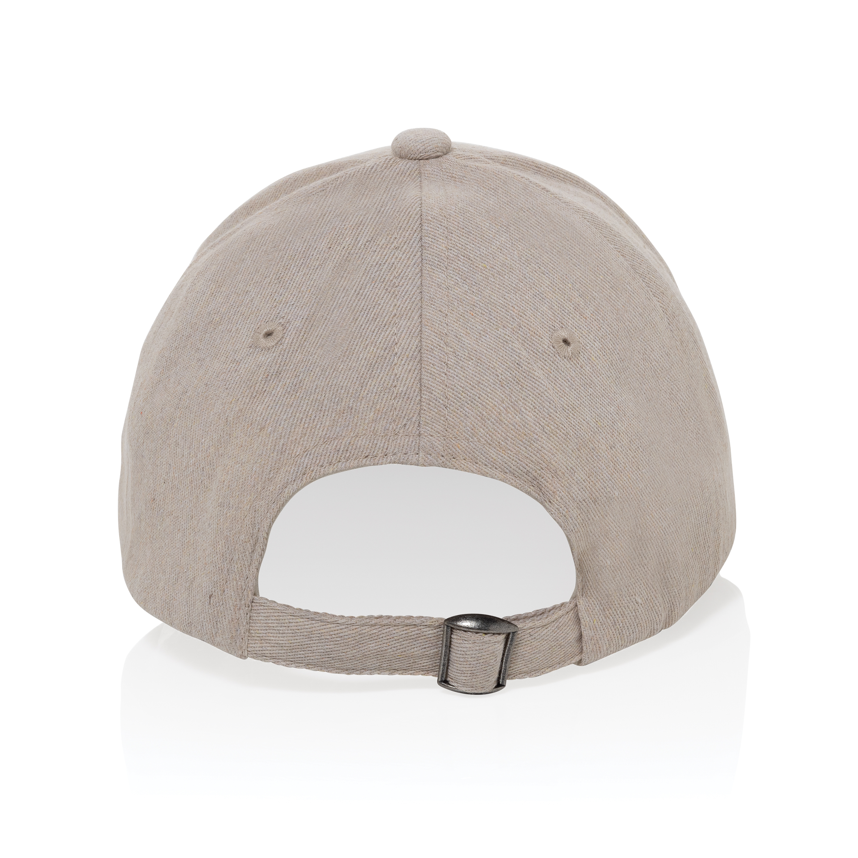 Gorra de 6 paneles Milo AWARE™ de color jaspeado. 70% algodón reciclado y 30% poliéster reciclado. La gorra viene con cierre de hebilla de metal.