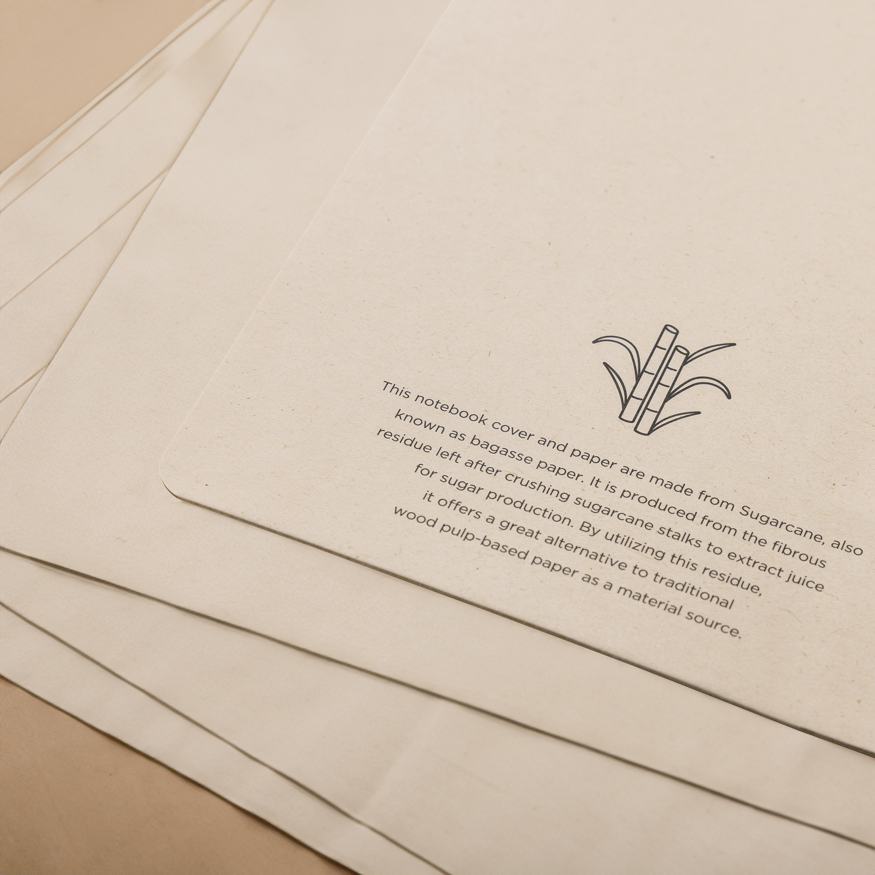 Una preciosa libreta con tapa de caña de azúcar natural. Perfecto para aquellos que quieren plasmar sus pensamientos en papel. Las páginas también están hechas de papel de caña de azúcar. El cuaderno cuenta con 80 hojas/160 páginas rayadas de color crema de 80 g/m2.