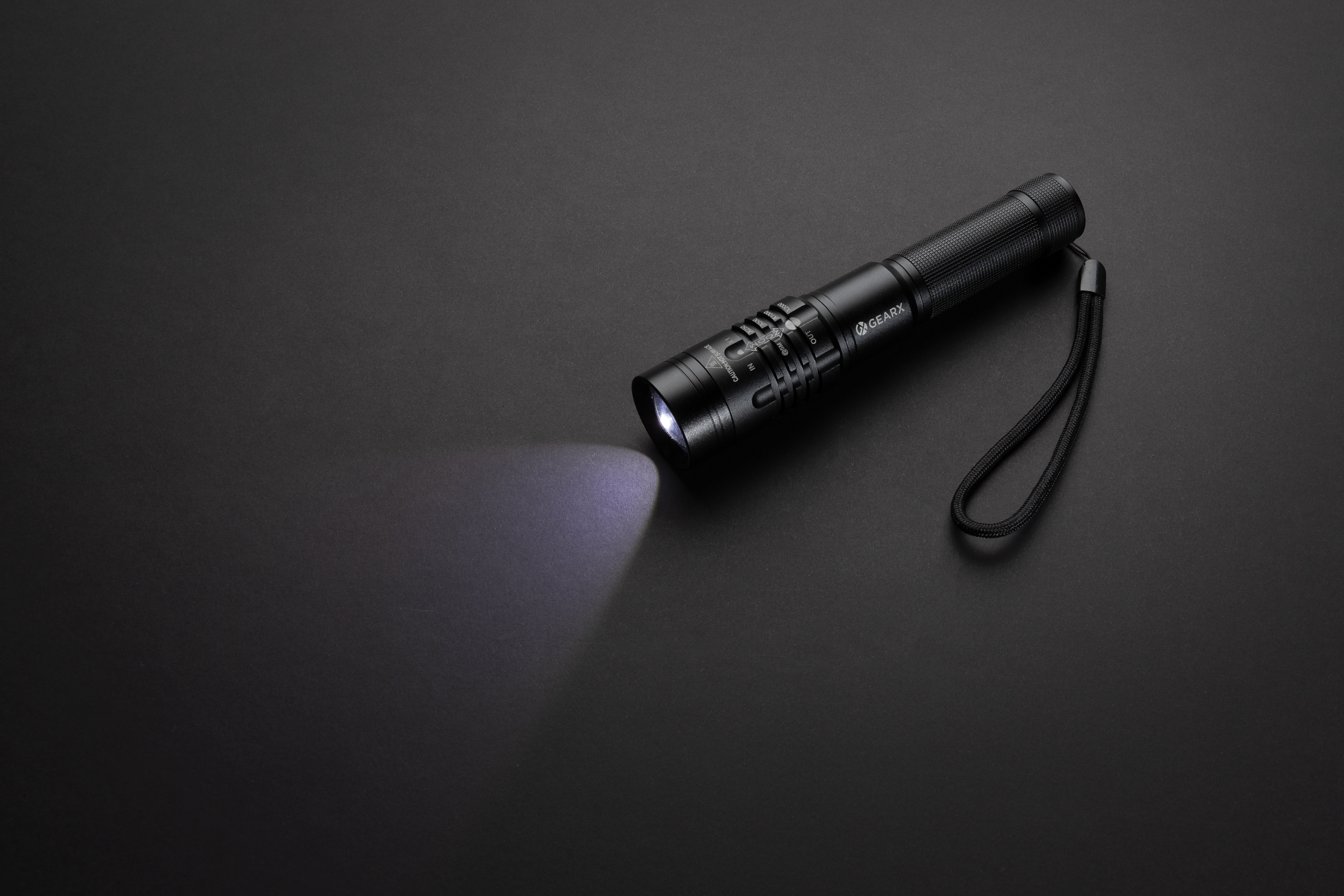 Funcionalidad, rendimiento y diseño se unen en esta linterna recargable. El cuerpo de aleación de aluminio de alta calidad se adapta perfectamente a tu mano. La luz de enfoque premium te permite extender la luz hasta 2000 veces. Debido a su clasificación IP4, es resistente a la intemperie, por lo que se puede sacar fácilmente al exterior. La potente bombilla crea hasta 1000 lúmenes y un haz que alcanza hasta 500 metros. La linterna utiliza una batería recargable, por lo que no es necesario reemplazar las baterías. Simplemente recarga a través de su toma USB. La bombilla de alta calidad viene con 5 modos, incluida la función SOS. La batería de 2000 mah permite un uso de hasta 4 horas con una sola carga.