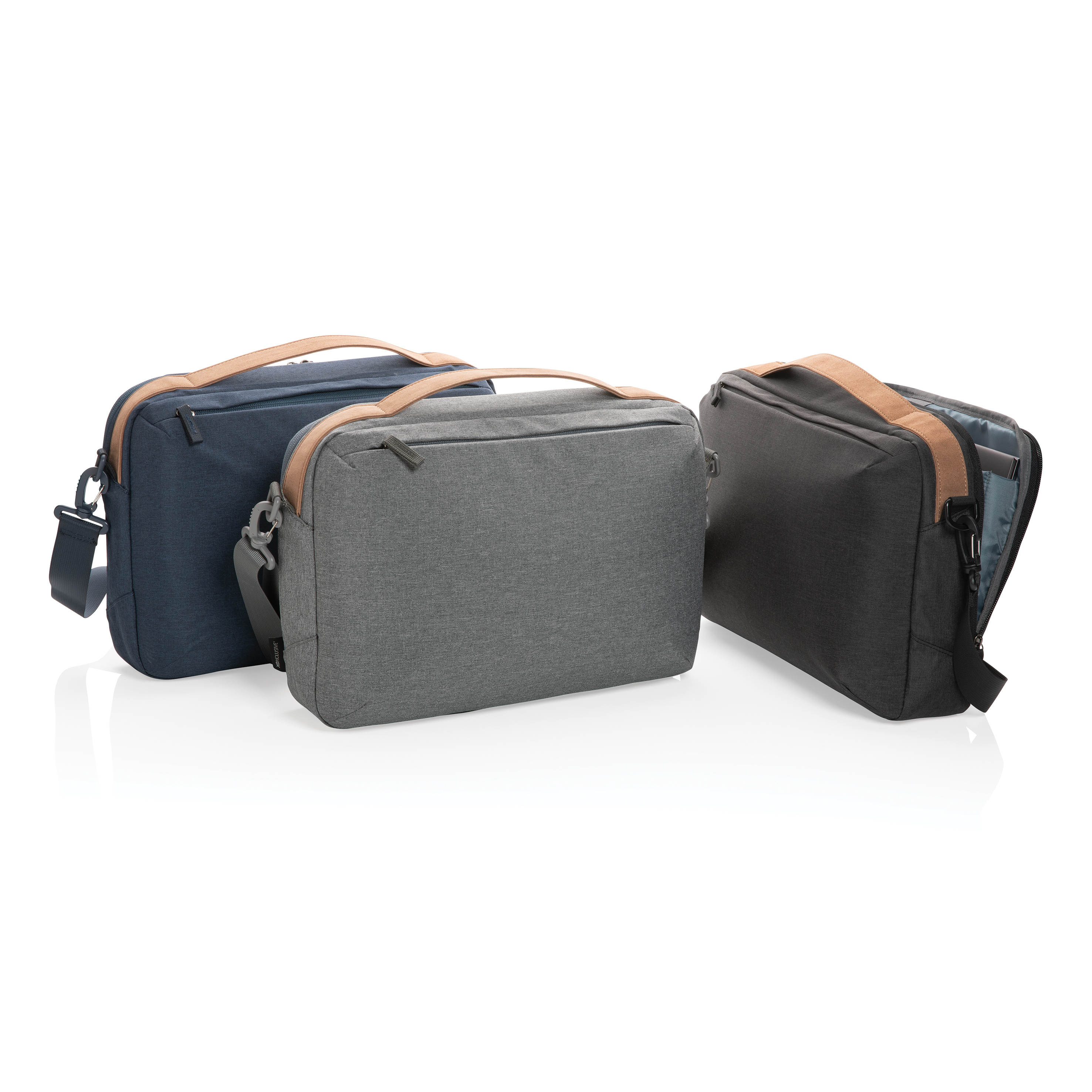 Elegante dentro y fuera de la oficina con este maletín para portátil de diseño minimalista. El compartimento principal cuenta con un compartimento para portátil de 15,6 pulgadas y dos bolsillos de malla abiertos. Bolsillo frontal con cremallera. En la parte superior puedes encontrar un asa de PU. El material exterior y el forro están fabricados con poliéster reciclado. Con trazador AWARE ™ que valida el uso genuino de materiales reciclados. El 2% de las ganancias de cada producto de Impact vendido se donarán a Water.org.