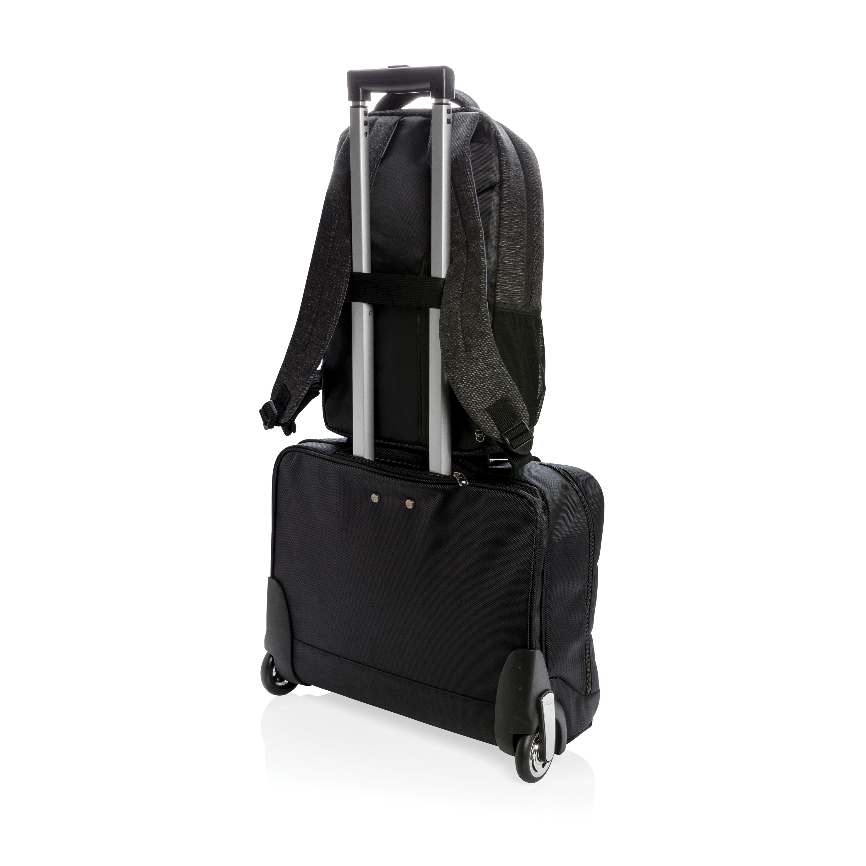 Lleva todo lo que necesites para el colegio o para cualquier viaje en esta mochila de tela 900D de diseño urbano con asas ajustables para mayor comodidad. Esta mochila dispone de un compartimento central acolchado, otro principal para llevar libros o ropa, un bolsillo frontal con cremallera para accesorios y asa para trolley en la parte trasera. Compatible con portátiles hasta 15.6”. sin PVC.