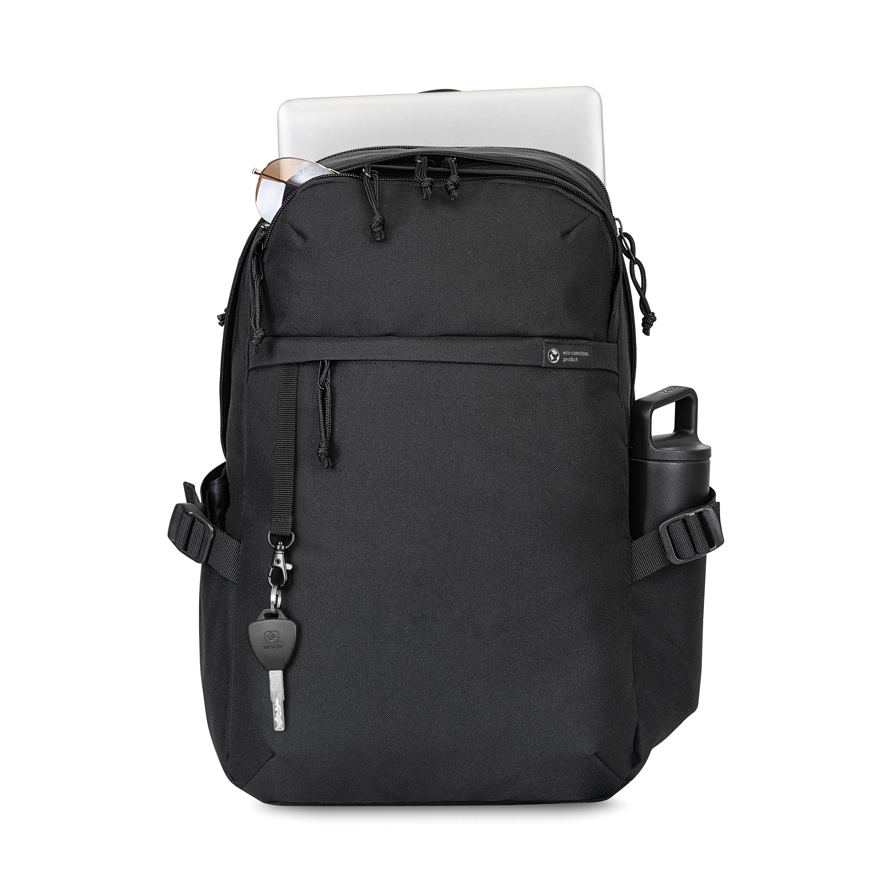 Una versión moderna y sostenible de una mochila clásica para ordenador que utiliza tejido reciclado y correas fabricadas a partir de botellas de plástico. Bolsillo superior doble con cremallera para guardar accesorios. Bolsillo frontal con cremallera y clip para llavero. Dos bolsillos laterales para botellas de agua con correas de compresión. Compartimento trasero acolchado con doble cremallera para portátil (con capacidad para un portátil de hasta 15″). El compartimento principal con cremallera incluye bolsillos interiores para organizarse. Asa de mano superior. Panel trasero acolchado. Correas de hombro acolchadas y ajustables. Disponible en ambos lados del Atlántico. Gemline también ofrece este artículo para clientes de EE. UU. y Canadá.