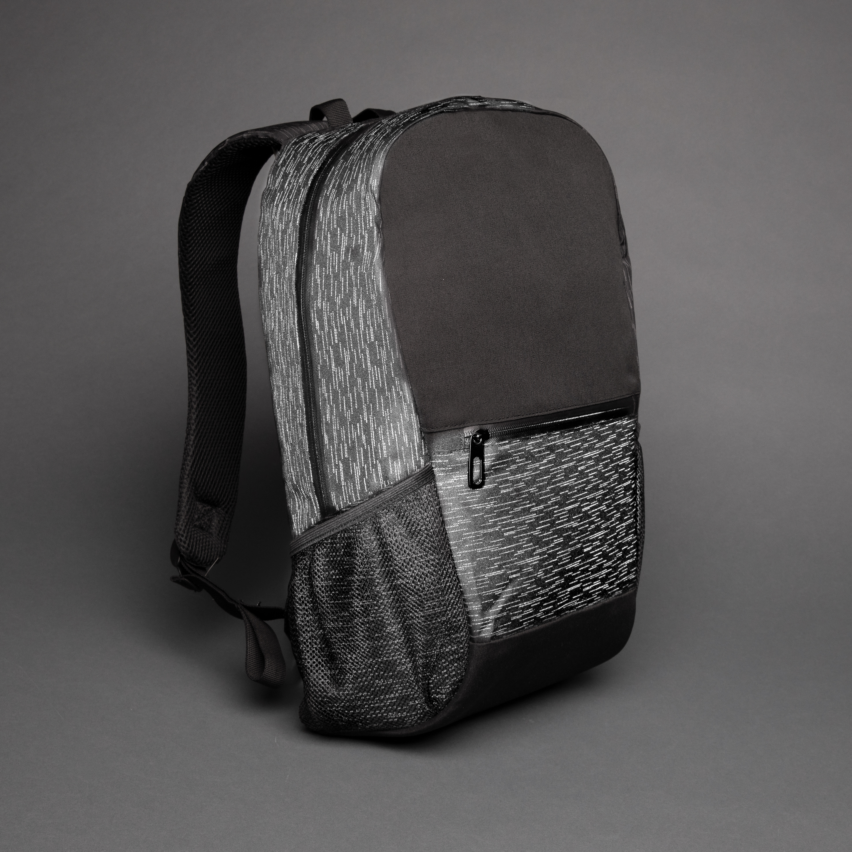 Aumenta tu visibilidad con estilo con esta mochila hecha con materiales 100% reciclados y trazador AWARE ™. Con AWARE ™, el uso de materiales de tela reciclados genuinos y las declaraciones de impacto de reducción de agua están garantizados mediante el uso del trazador físico disruptivo AWARE y la tecnología blockchain. Ahorra agua y usa telas recicladas genuinas. La mochila cuenta con un moderno estampado reflectante integral, un compartimento principa con espacio para portátil de 15,6 pulgadas, un bolsillo frontal con cremallera y 2 bolsillos de malla. Correas ajustables. Sin PVC. Esta bolsa ahorró 8 litros de agua y está hecha de 16 botellas de plástico.