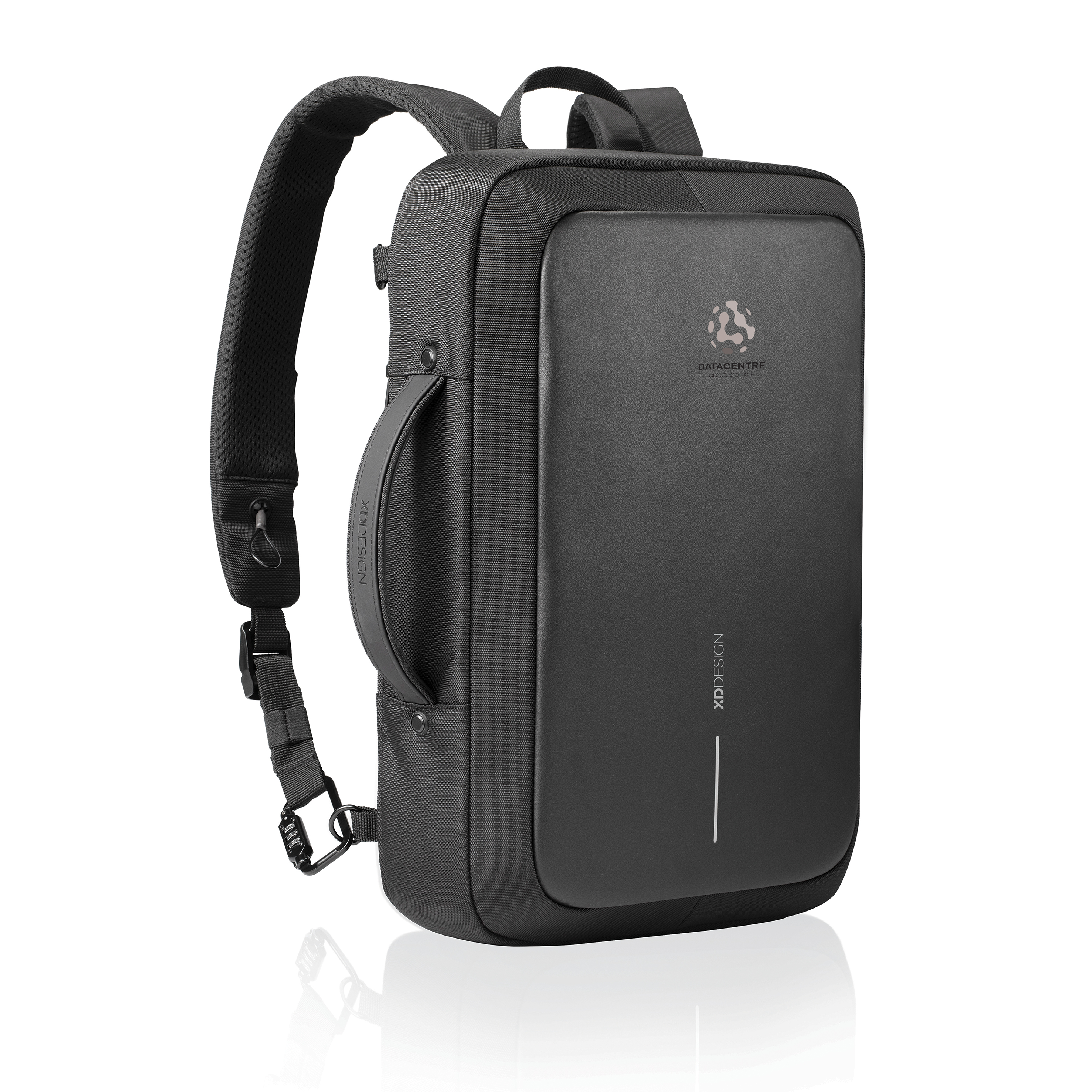 Mantén tus pertenencias seguras y haz que tu viaje sea más elegante con la nueva mochila Bobby Bizz 2.0. Listo para cualquier ocasión de negocios, puedes convertir esta mochila en un maletín en cuestión de segundos, simplemente colocando las correas de los hombros en el bolsillo trasero.Para mantener tu seguridad y la de tus pertenencias, el icónico diseño antirrobo de Bobby no tiene acceso frontal, cremalleras ocultas y un bolsillo oculto con protección RFID. Está mejorado con material resistente a los cortes y un marco de metal incorporado. También puedes bloquear de forma segura tu Bobby Bizz 2.0 a cualquier objeto fijo con el candado de aleación de zinc integrado en la correa derecha. En el interior de la mochila hay compartimentos acolchados para un portátil de 16”, una tablet de hasta 10” y todo tu equipo profesional. Ahora fabricado con tejido R-pet con el trazador AWARE™. Con AWARE™, el uso de tejido reciclado genuino está garantizado. Contenido reciclado 33%.