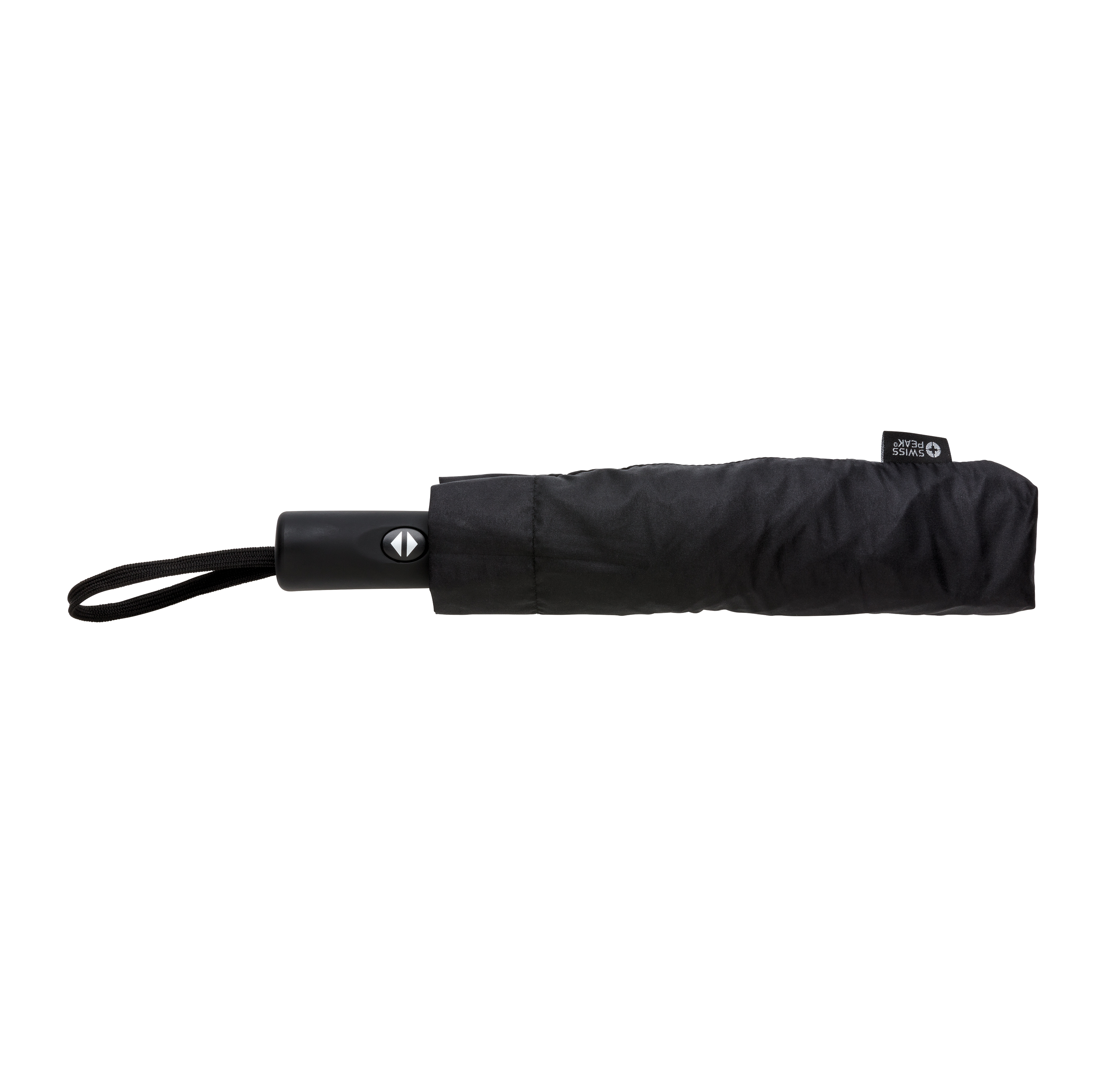 El paraguas reversible de apertura/cierre automático de 3 secciones de 23 pulgadas es un accesorio conveniente y elegante para protegerse de la lluvia. Hecho de material RPET pongee 190T con varillas de fibra de vidrio y un eje de acero cromado, es resistente y duradero. El paraguas cuenta con un diseño único de apertura inversa, que mantiene las fugas de agua en el interior y evita que se moje al entrar o salir de un automóvil o edificio. Con trazador AWARE™ que valida el uso genuino de materiales reciclados. El 2% de las ganancias de cada producto Aware™ vendido se donará a Water.org.