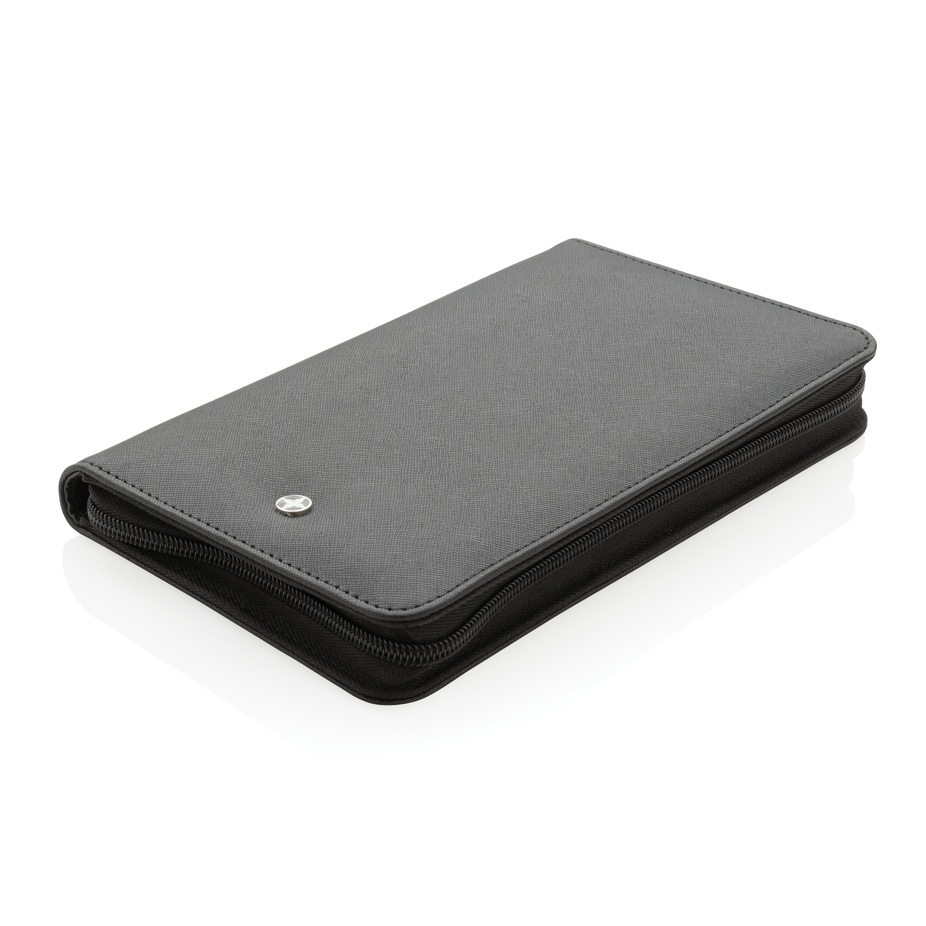 La billetera de viaje de lujo con protección RFID mantiene seguros todos tus documentos, como pasaporte, boletos y dinero. Con 4 ranuras para tarjetas, un lazo para bolígrafo y espacio para tu teléfono móvil. Fabricado con materiales reciclados certificados RCS (Recycled Claim Standard). La certificación RCS garantiza una cadena de suministro completamente certificada de los materiales reciclados. Fabricado con PU reciclado y certificado RCS. Contenido reciclado total: 21% basado en el peso total del artículo. Libre de PVC.