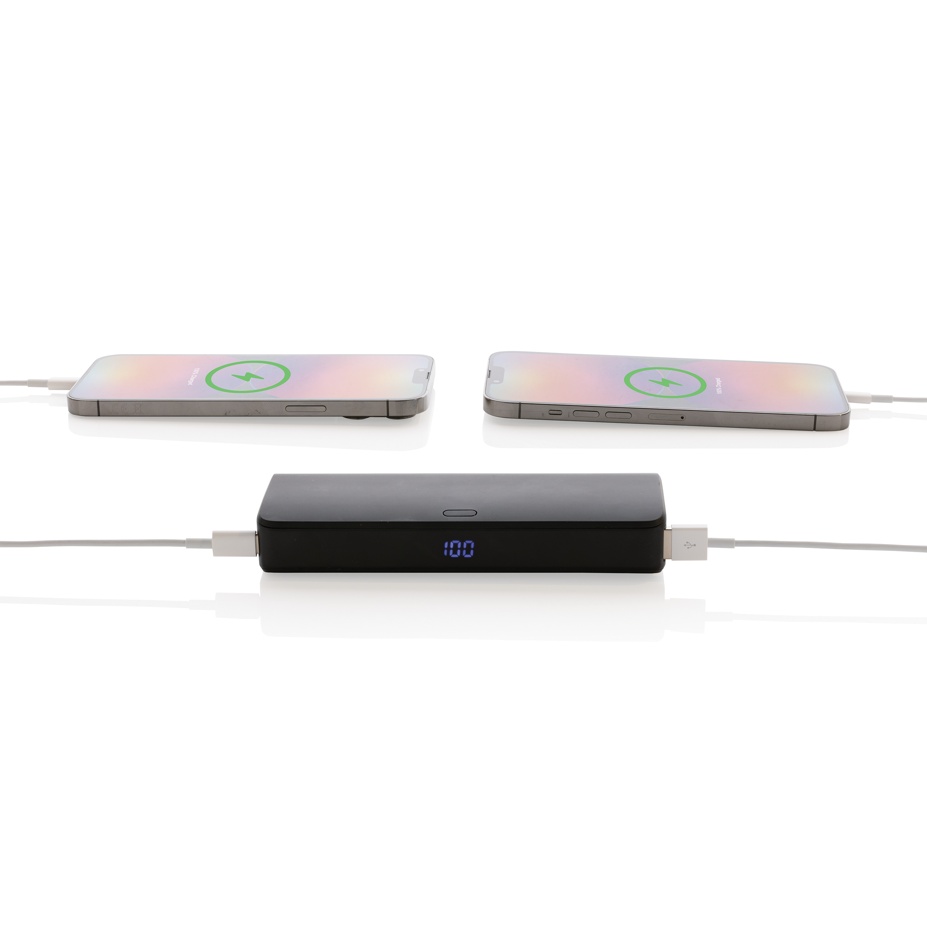 Powerbank PD de 20.000 mAh y 20W cuya carcasa está fabricada en plástico ABS reciclado certificado RCS. RCS (Recycled Claim Standard) es un estándar para verificar el contenido reciclado de un producto a lo largo de toda la cadena de suministro. Contenido total reciclado: 15% basado en el peso total del artículo. Con su diseño elegante y que ahorra espacio, la batería externa Flashcharge es notablemente compacta, lo que garantiza que puedas llevarla sin esfuerzo a donde quiera que vayas. Experimenta una carga ultrarrápida para dispositivos iOS y Android. No más largos tiempos de espera. El powerbank en sí admite una recarga rápida de 18W, por lo que puede recargarse más rápido que un powerbank normal. Equipado con un puerto USB-A Quick Charge 3.0 y un puerto PD Type-C de 20 W, puede cargar varios dispositivos simultáneamente, sin comprometer la velocidad de carga. Pantalla LED.