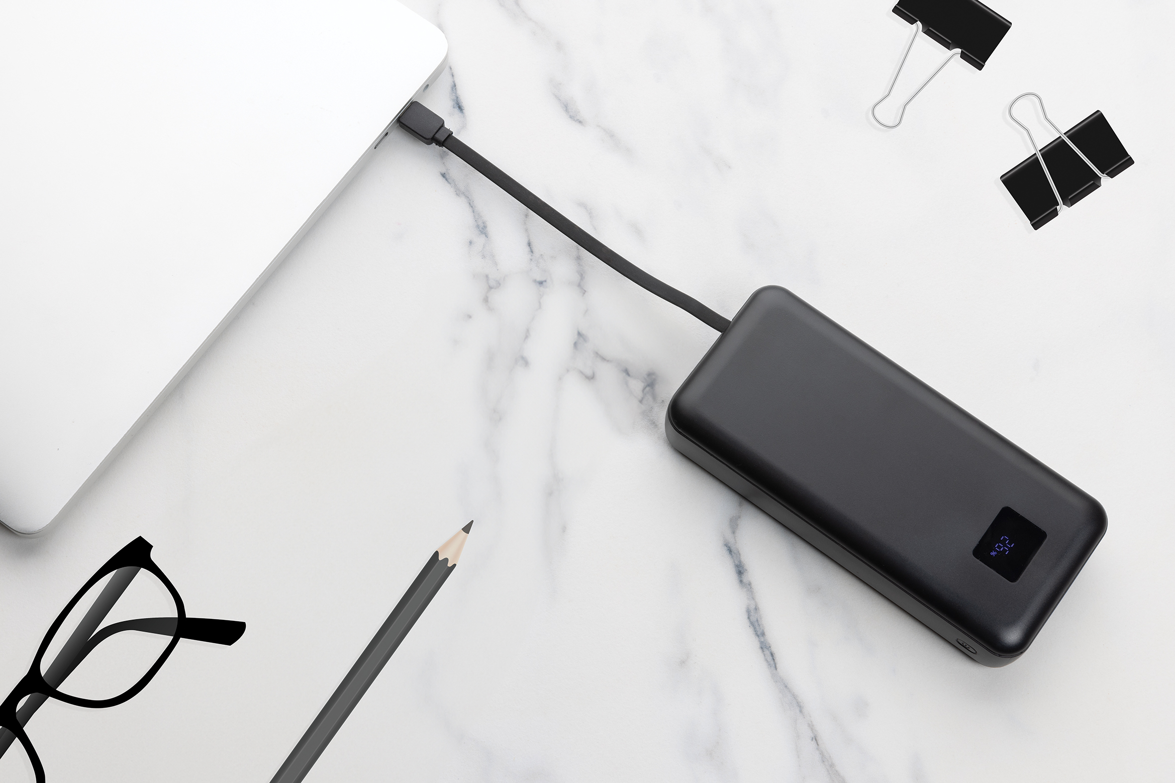 ¿Estás harto de la búsqueda constante de salidas de carga? Conoce el Powerbank Supercharge de 65 W! Powerbank PD de 20.000 mAh y 20W cuya carcasa está fabricada en plástico ABS reciclado certificado RCS. RCS (Recycled Claim Standard) es un estándar para verificar el contenido reciclado de un producto a lo largo de toda la cadena de suministro. Contenido total reciclado: 13% basado en el peso total del artículo. Carga todos tus dispositivos con facilidad gracias a su potente salida de 65W y cables tipo C e iOS integrados. Adiós a los cables enredados y a la espera de recargas: este powerbank admite recarga ultrarrápida de 45W mediante Tipo C (hasta 65 W) y USB A (hasta 22,5 W). Si eres un profesional ocupado, un estudiante en constante movimiento o un aventurero, este powerbank es tu mejor compañero. Dile adiós a la ansiedad por la batería baja y dale la bienvenida a una carga confiable y ultrarrápida con el Supercharge Powerbank de 65 W. Con pantalla LED.