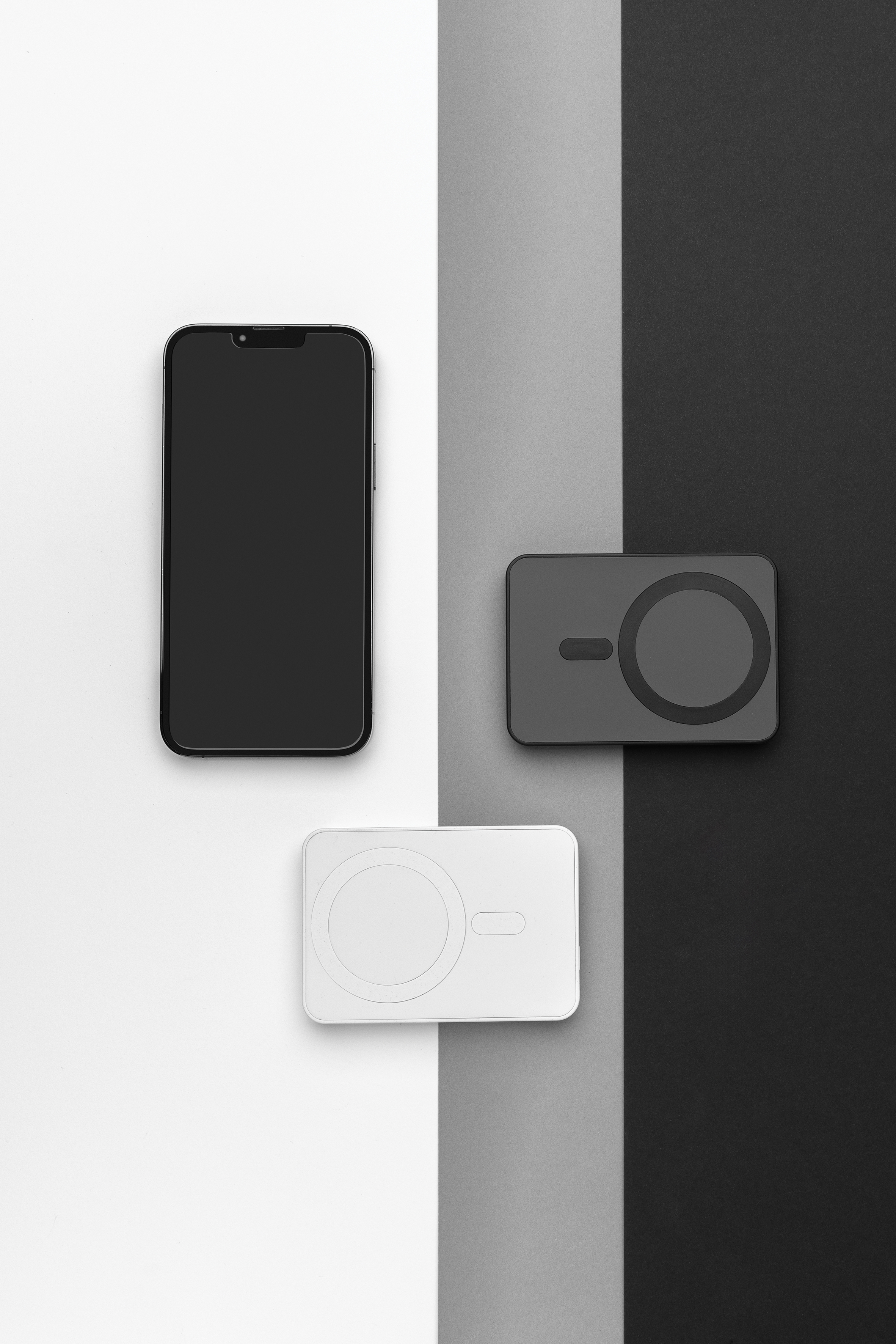 Powerbank de bolsillo de 5.000 mAh con cargador inalámbrico magnético de 5W cuyo estuche está fabricado en plástico ABS reciclado certificado RCS. RCS (Recycled Claim Standard) es un estándar para verificar el contenido reciclado de un producto a lo largo de toda la cadena de suministro. Contenido reciclado total: 20% basado en el peso total del artículo. Contiene una batería de polímero de litio de grado A de 5000 mAh de larga duración. Los indicadores de energía indicarán el nivel de energía restante para que siempre sepas cuándo recargar.; Entrada tipo C 5V/2,4 A; Salida tipo C: 5V/2A.4A Artículo y accesorios libres de PVC. Incluye cable de carga de TPE reciclado certificado RCS. Presentado en envase mixto FSC®.