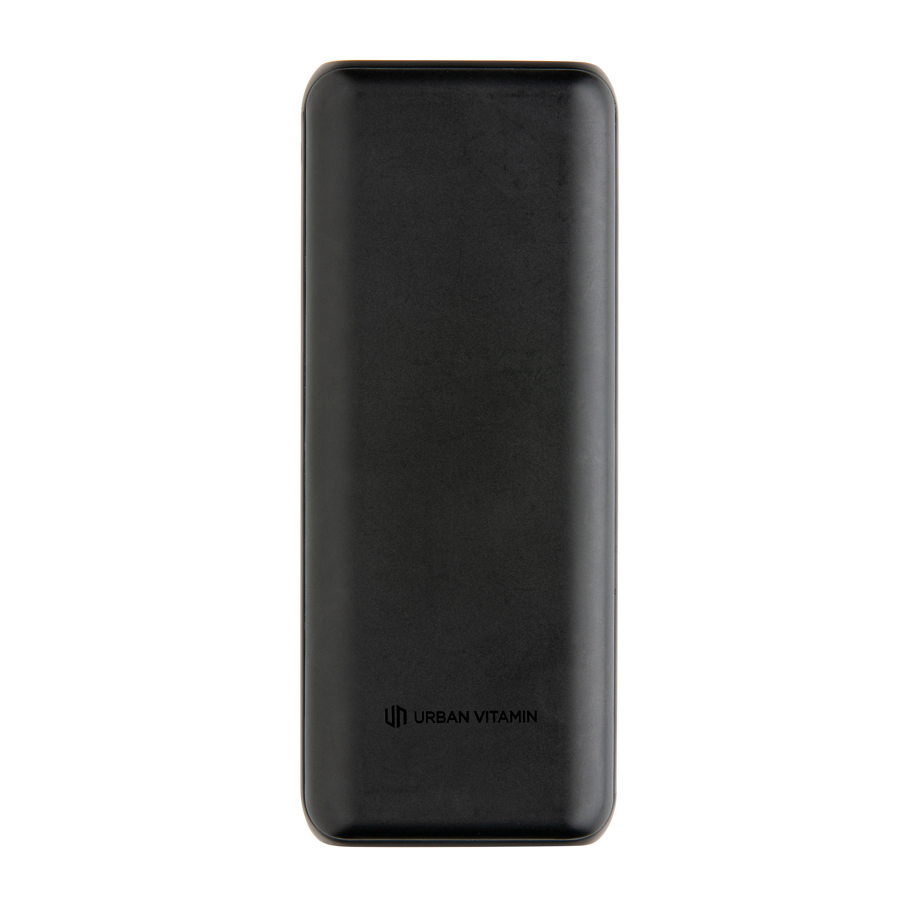 Carga tu teléfono hasta 5 veces con este powerbank de carga rápida. Gracias al puerto PD ultrarrápido tipo C de 18W, la batería externa se recarga en un tiempo récord. Cargar tu teléfono hasta un 50% lleva solo 30 minutos. La carga lenta es algo del pasado. El powerbank contiene una batería de 20.000 mah de grado A de larga duración para cargar todos tus dispositivos en tus viajes y aventuras. El puerto doble USB A y tipo C te permite cargar hasta 3 dispositivos al mismo tiempo. Los artículos de Urban Vitamin están fabricados sin PVC y presentados en caja con plástico reducido. Entrada tipo C: 5V/3A, 9V/2A; Entrada micro USB: 5V/2A, 9V/2A; Salida tipo C: 5V/3A, 9V/2A, 12V/1.5A; Salida USB: 5V/2.4A, 9V/2A, 12V/1.5A.