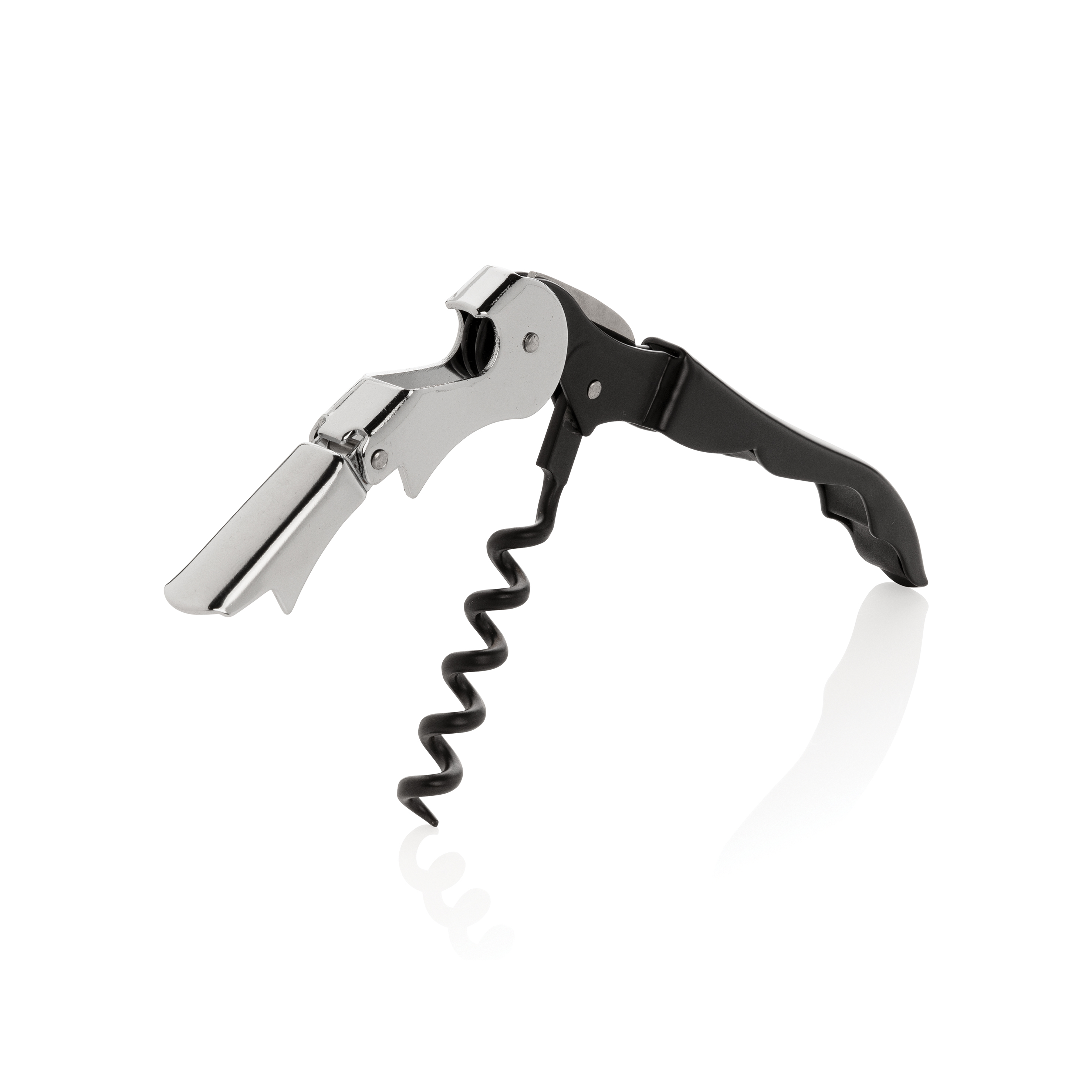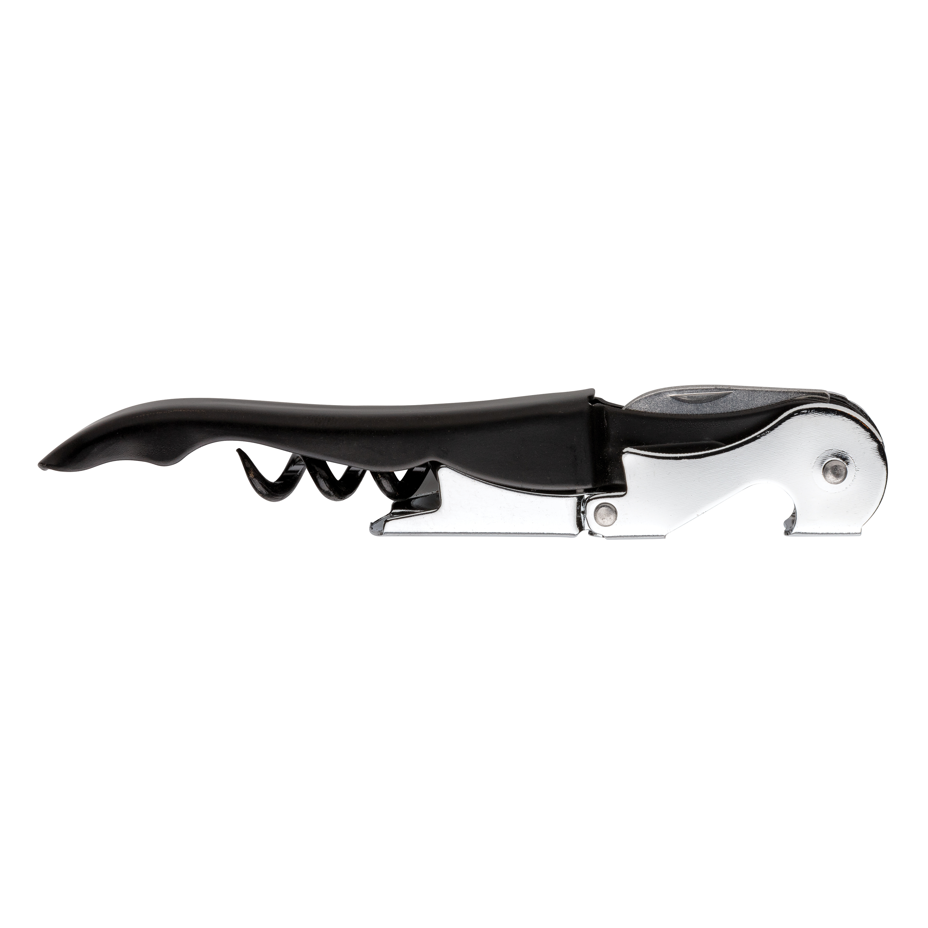 Este sacacorchos de camarero es un diseño clásico de sacacorchos que tiene una cuchilla de corte de aluminio, un levantador de corcho de dos etapas y un abrebotellas. Presentado en caja de regalo.