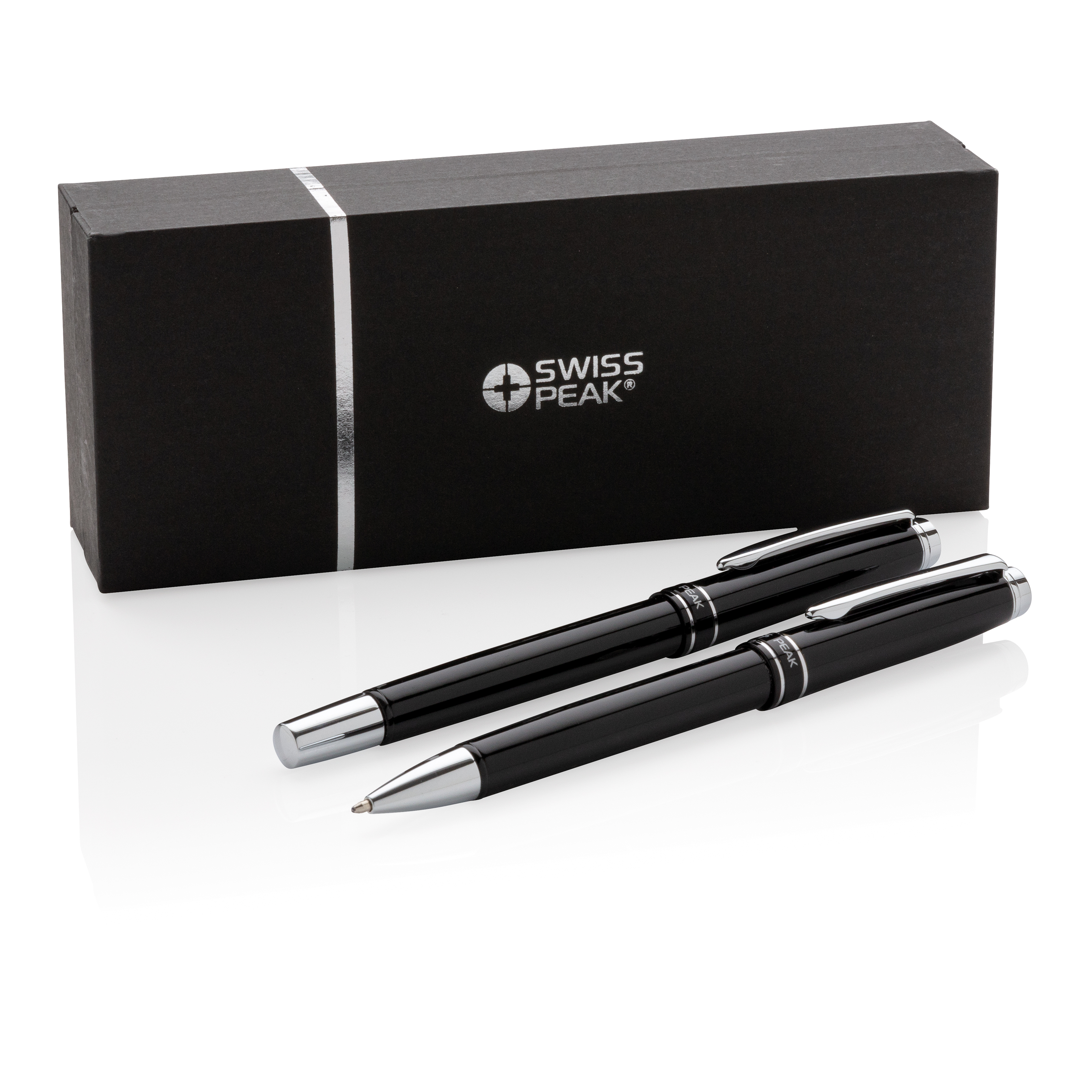 La colección Swiss Peak Heritage habla el lenguaje de la elegancia moderna. Bolígrafo de metal de lujo y roller a juego presentado en caja de regalo Swiss Peak. Ambos rellenos con un mínimo de 1200 metros de escritura y tinta alemana.