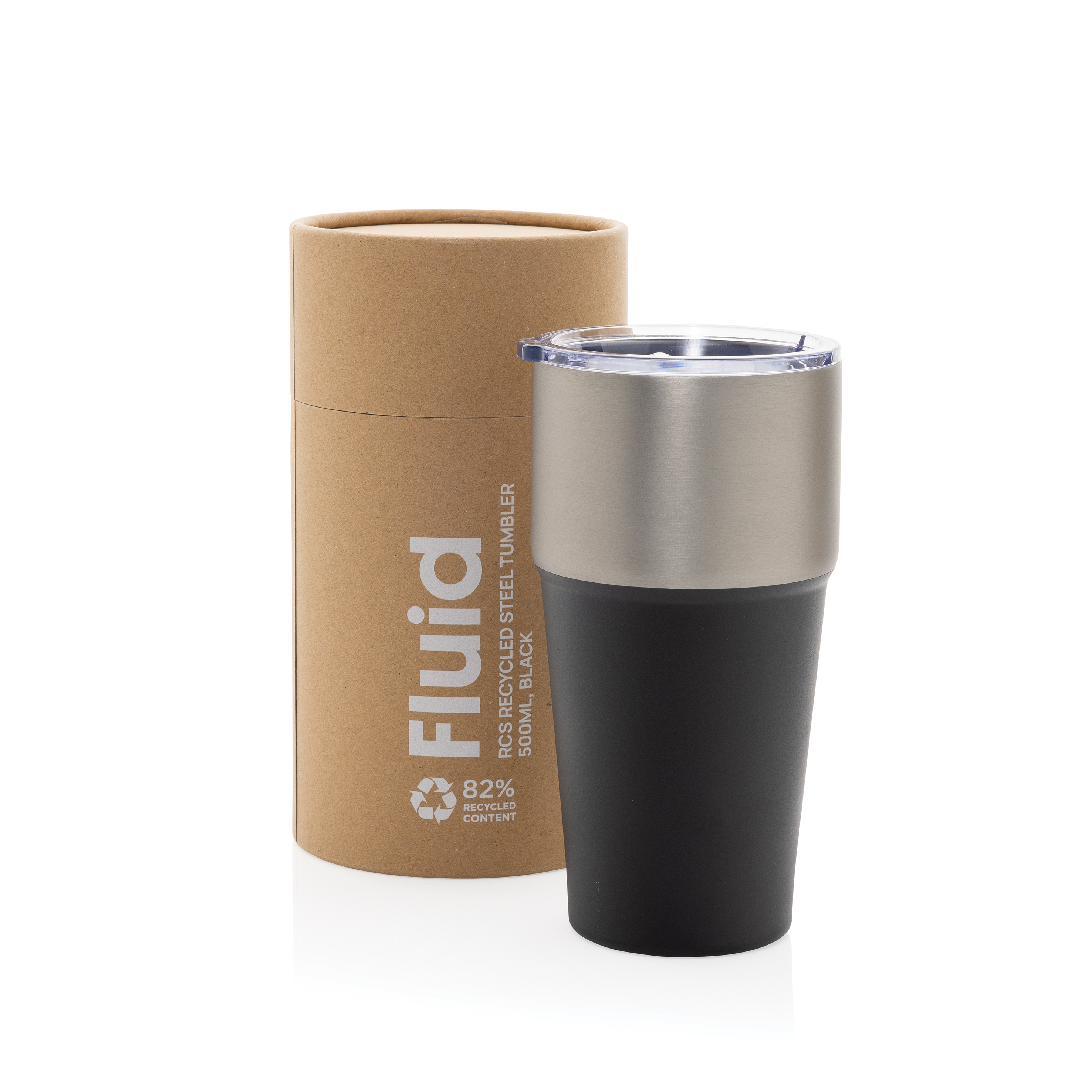 Este vaso de 500 ml presenta un exterior distintivo de dos colores con un elegante diseño. La construcción al vacío de acero inoxidable reciclado de doble pared mantiene las bebidas frías hasta 15 horas o calientes hasta 5 horas. El Fluid Tumbler se adapta a la mayoría de los portavasos estándar para automóviles, lo que lo hace perfecto para usarlo mientras viajas. Fabricado con materiales reciclados certificados RCS (Recycled Claim Standard), lo que garantiza una cadena de suministro de materiales reciclados completamente certificada. Sin BPA. Incluye set de regalo de tubo kraft con certificación FSC®. Contenido reciclado total: 81% sobre el peso total del artículo.