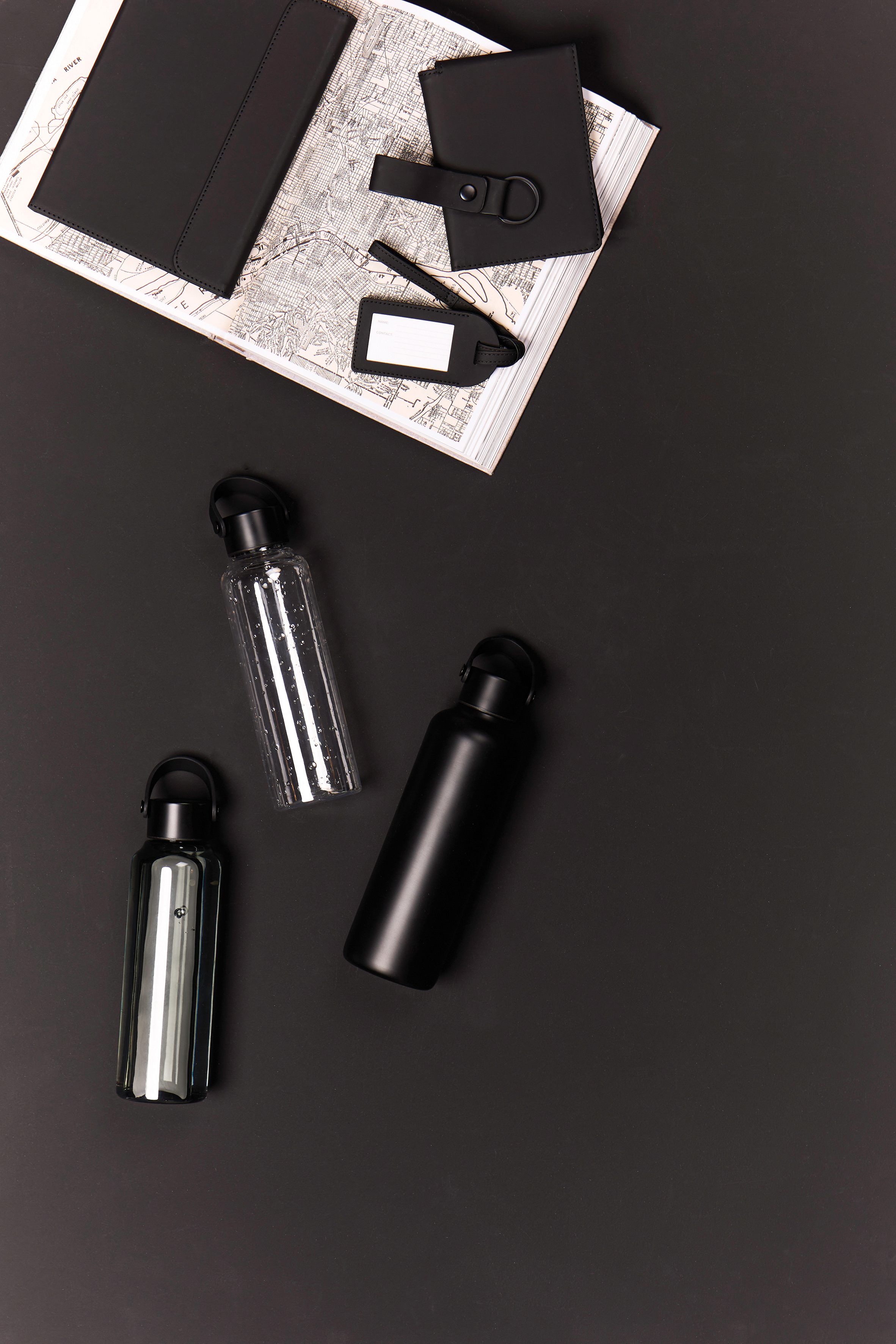azul marino, greige, negro, transparente, verde