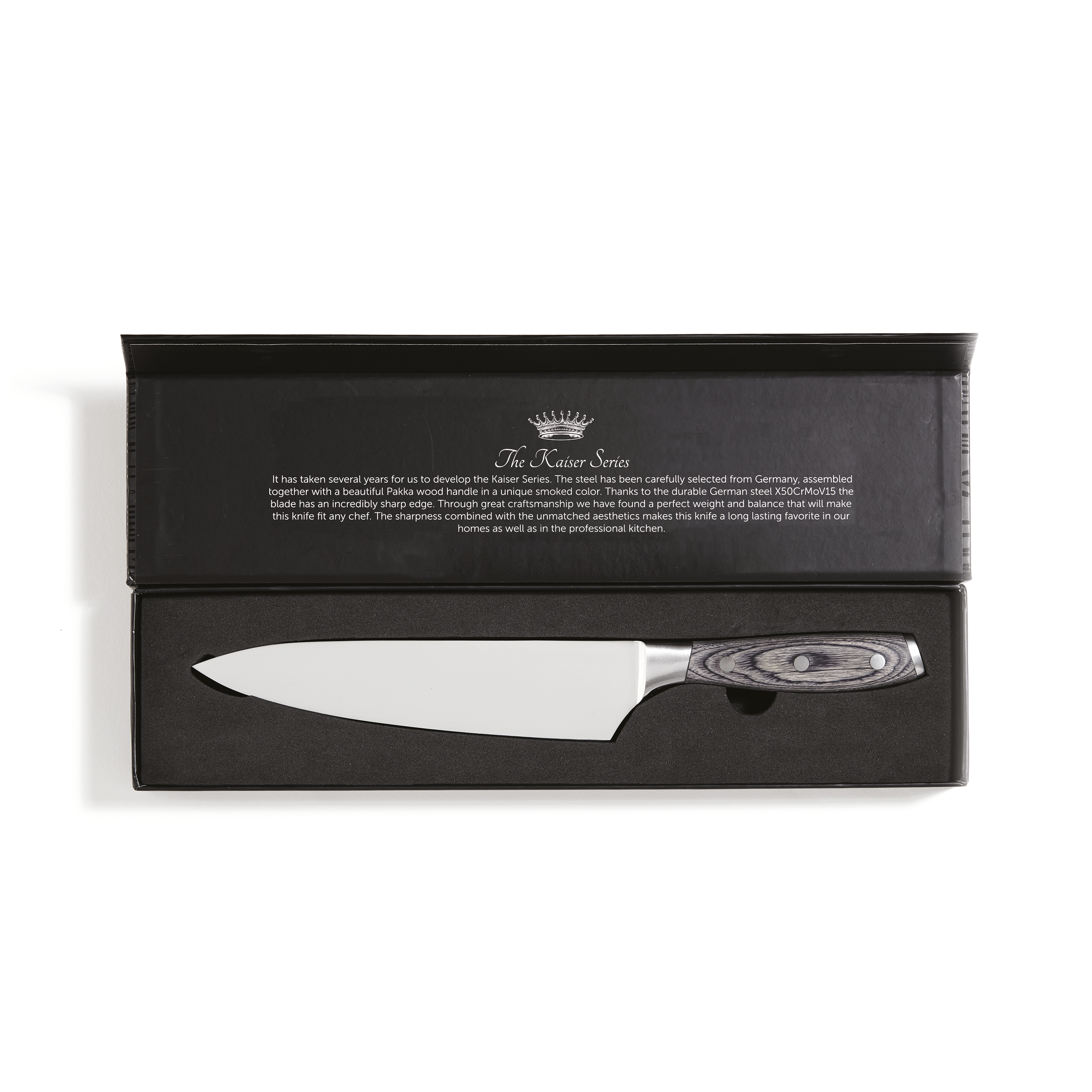 Este cuchillo de edición para chefs es ideal para cortar carne y verduras más grandes o picar hierbas. El robusto mango de madera de pakka tiene un diseño ergonómico que hace que el cuchillo sea fácil y cómodo de usar. Esto significa que puede trabajar con el cuchillo durante mucho tiempo sin cansar su mano. La hoja tiene un núcleo increíblemente duro de acero VG10 que está fundido en 67 capas de acero. El resultado es una hoja duradera con un afilado increíble y un rendimiento de corte sobresaliente.